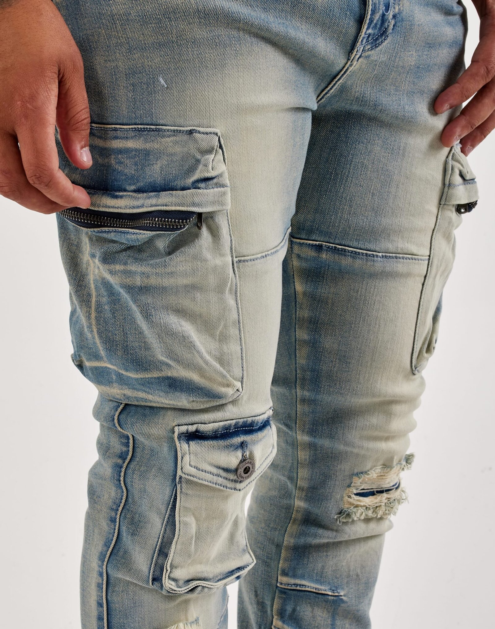 Looking for a pair of jeans that go with everything? Look no further than these jeans from Kilogram. These men’s pants have a slim fit and feature spacious cargo pockets.
