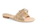 Classicly cute and all-day-wearable. We love this sandal.This low-heel sandal features delicate ruffle detailing for a feminine touch. Crafted with a leather upper and lining, it offers a comfortable fit with a padded insole and a subtle 1/2′ heel. Finished with a durable rubber outsole, it’s a stylish and versatile option for everyday wear.