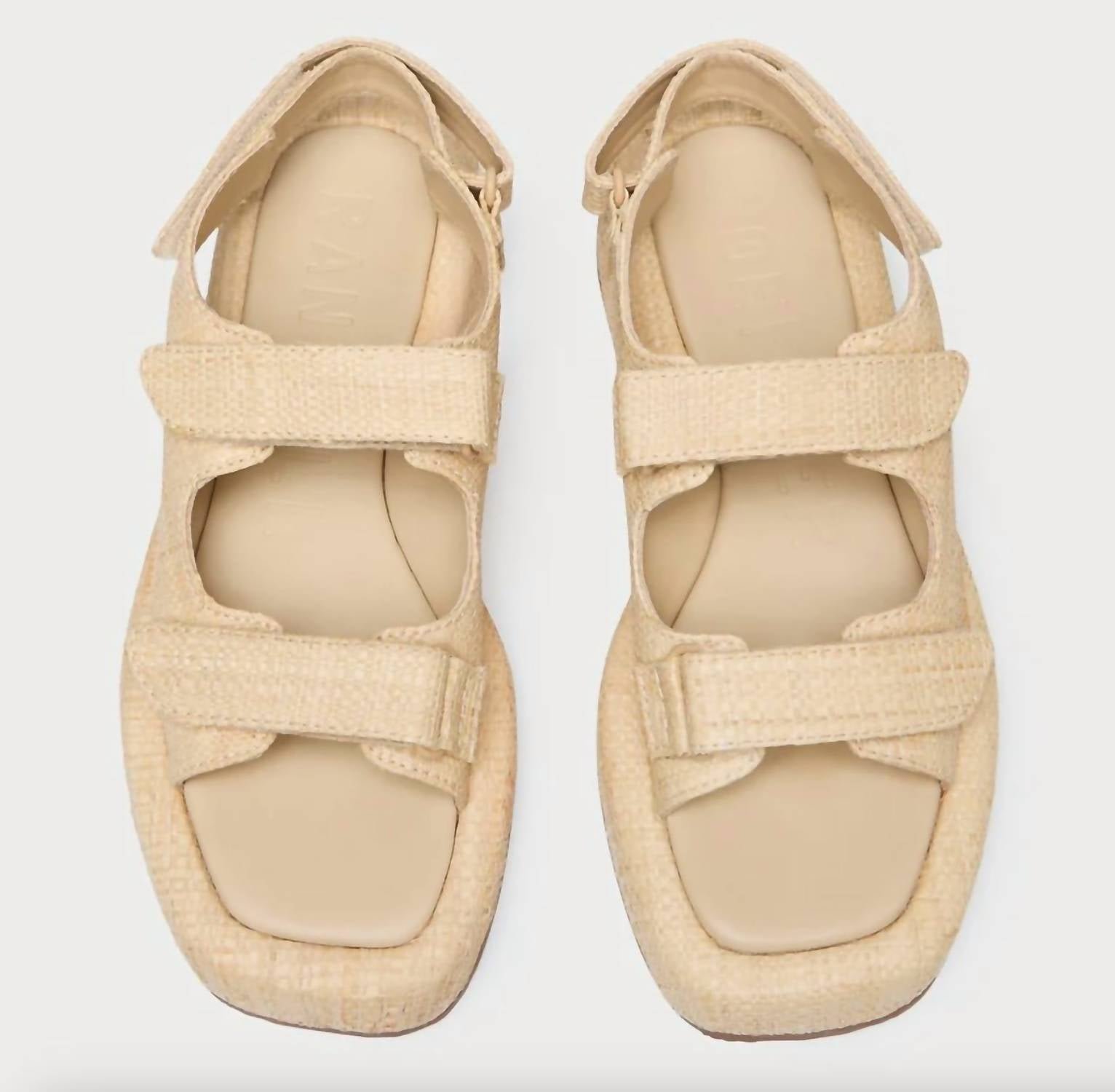 Flowy dresses, cropped pants, and even jumpsuits… this sandal works with them all!Meet the Women’s Blaise Platform Sandal by Loeffler Randall, an ideal choice for a stylish summer outing. Crafted in natural raffia, this sandal boasts an upper of 100% raffia and a 100% rubber outsole. It features a sporty two-band design with adjustable Velcro straps, open toe, and an adjustable heel strap, all set on a 1.25-inch platform for added height and a chunky look. Perfect for streetwear trend enthusiasts, this sandal is a beach day essential.