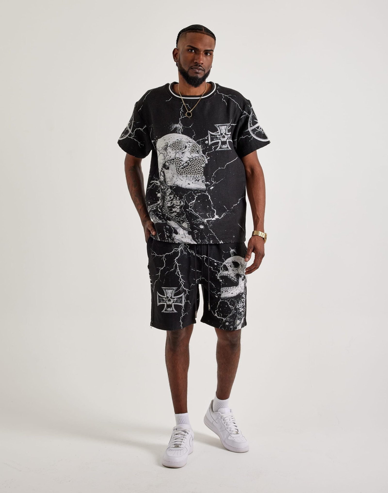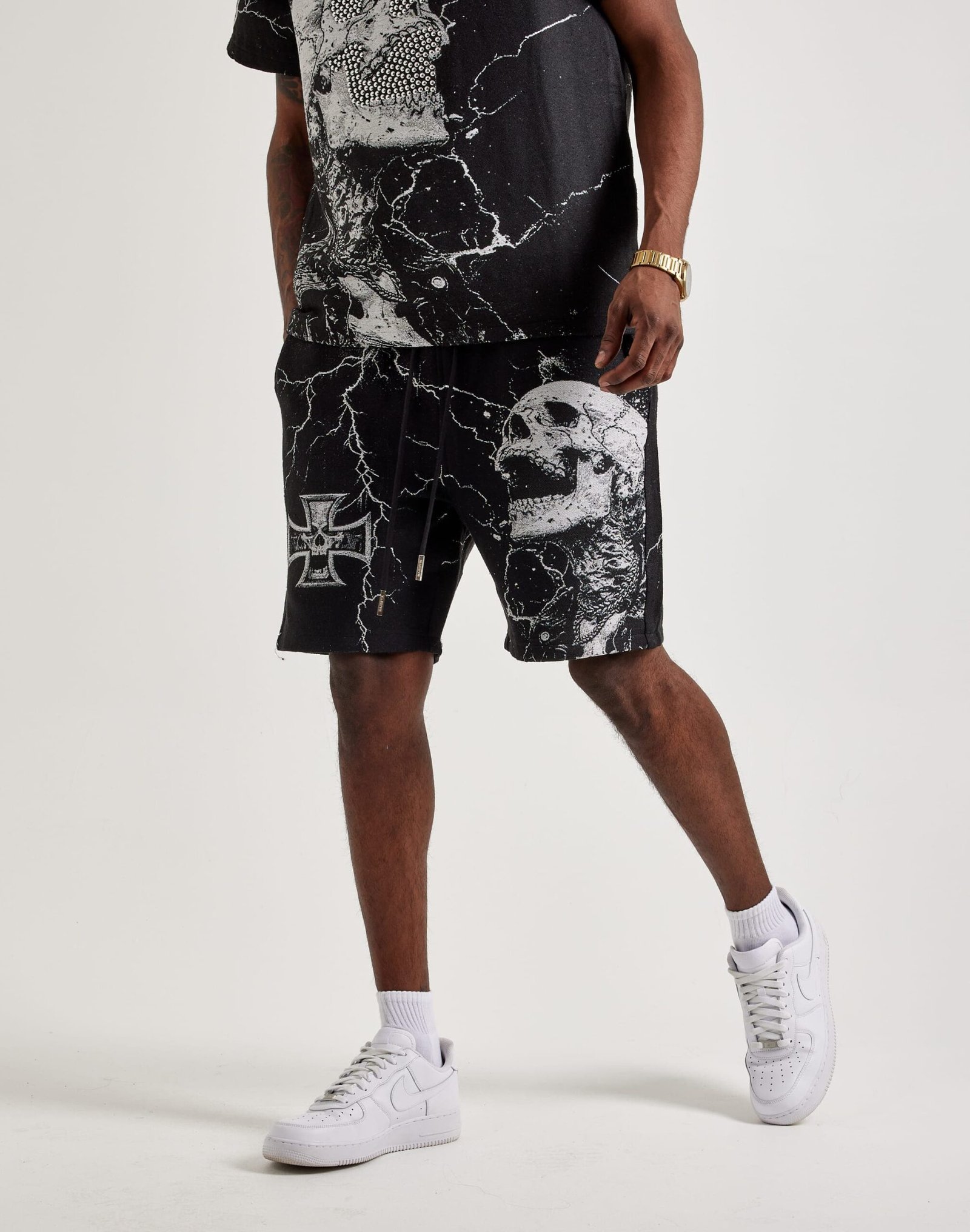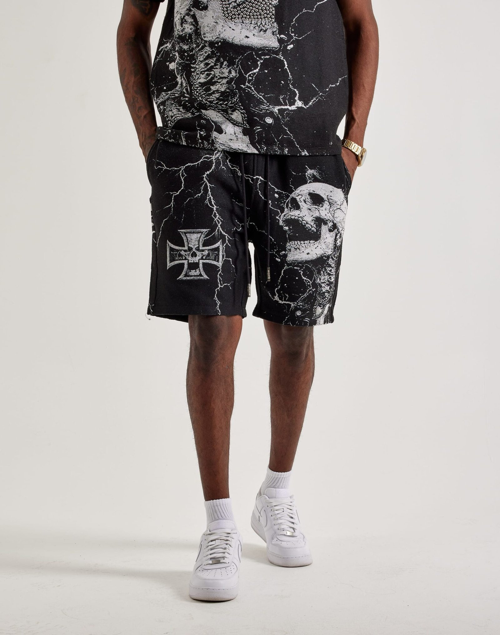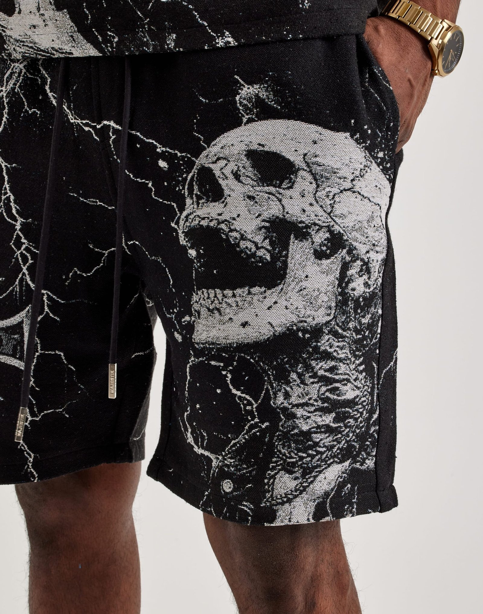 The Majestik Skull Tapestry Shorts showcase a bold skull design woven into a tapestry-inspired fabric for a standout streetwear vibe. With a relaxed fit and premium construction, these shorts deliver both comfort and edgy style.