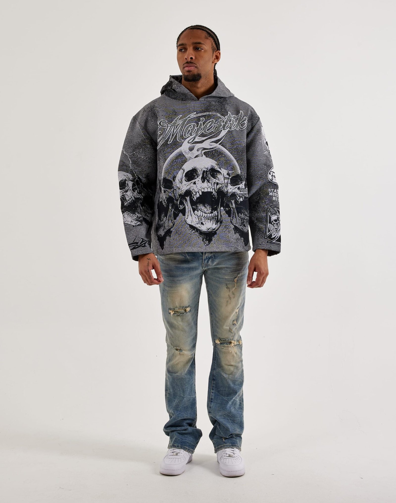 The Majestik Tactical Tapestry Hoodie is a piece of wearable art. This men’s sweatshirt has an oversized fit and features a standout allover print design.