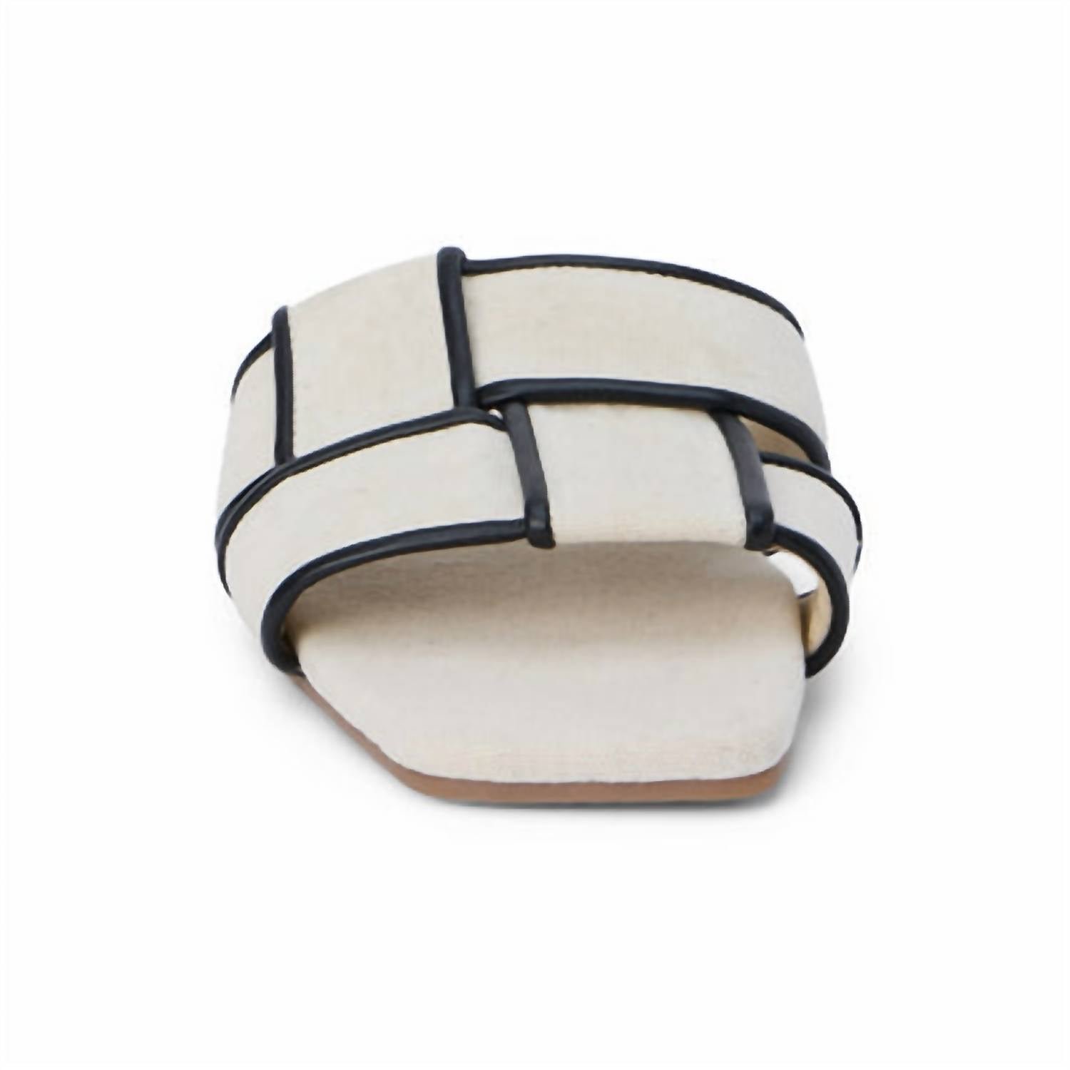 Flowy dresses, cropped pants, and even jumpsuits… this sandal works with them all!Step into summer elegance with the Women’s Biscayne Slide Sandal by Matisse, a minimalist favorite in ivory. This chic flat sandal features a linen/leather upper, a manmade outsole, and an open squared toe perfect for completing any church-ready outfit. Enjoy the padded insole and leather lining that ensure comfort and luxury in each step. Made in an easy slip-on style, these sandals represent an effortless blend of style and ease.