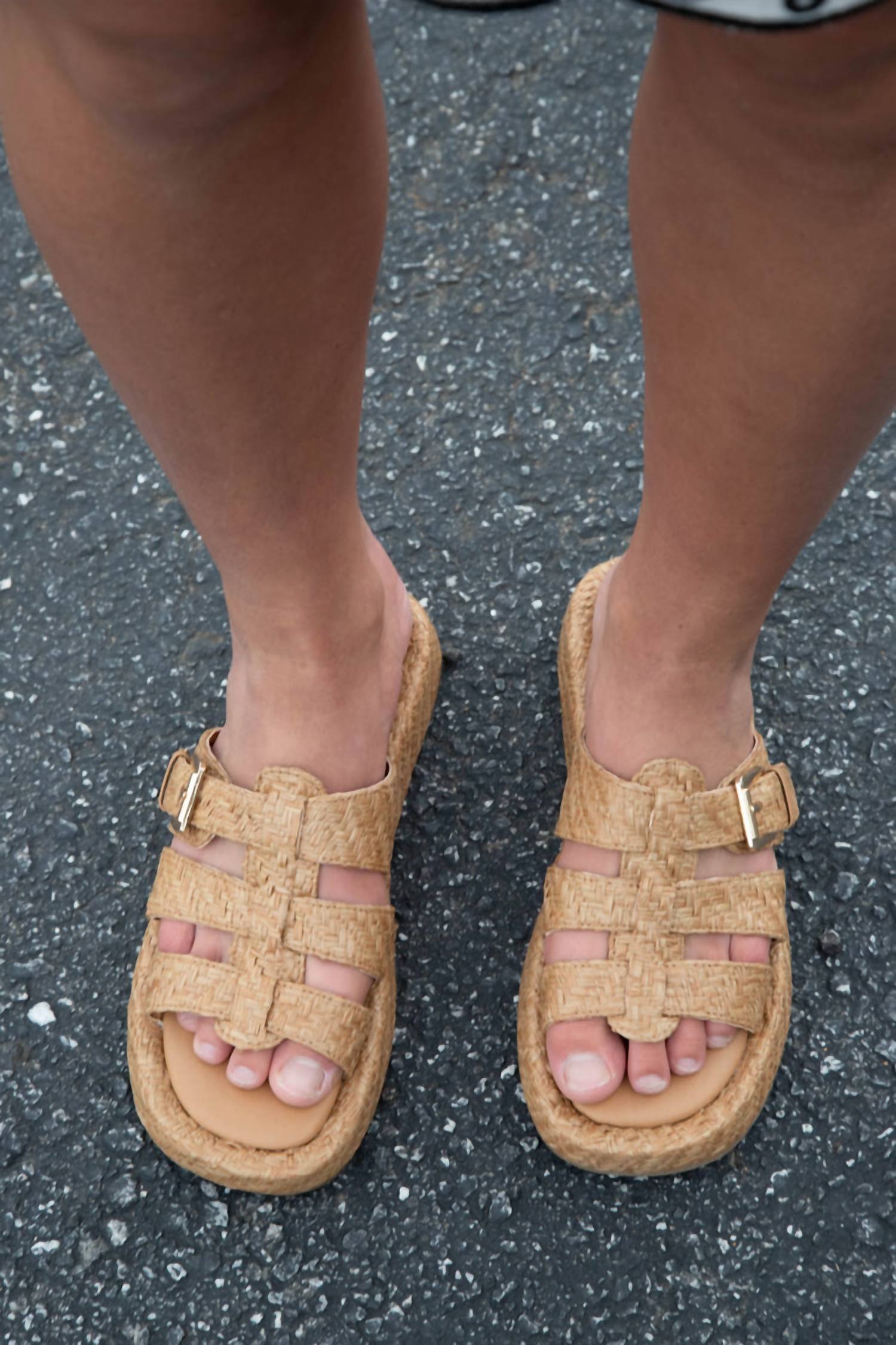 Flowy dresses, cropped pants, and even jumpsuits… this sandal works with them all!Step into style with the Women’s Ciao Platform Sandal by Matisse, a must-have for spring and summer travels. These sandals, in a versatile cognac color, are crafted from raffia and feature a low, flat heel measuring between 1 1/4′ to 2′. Designed with a round toe, fisherman style, and three adjustable buckle straps, they offer both comfort and a nod to ’90s fashion. Perfect for pairing with sundresses, these imported sandals are ideal for beach outings and casual strolls.