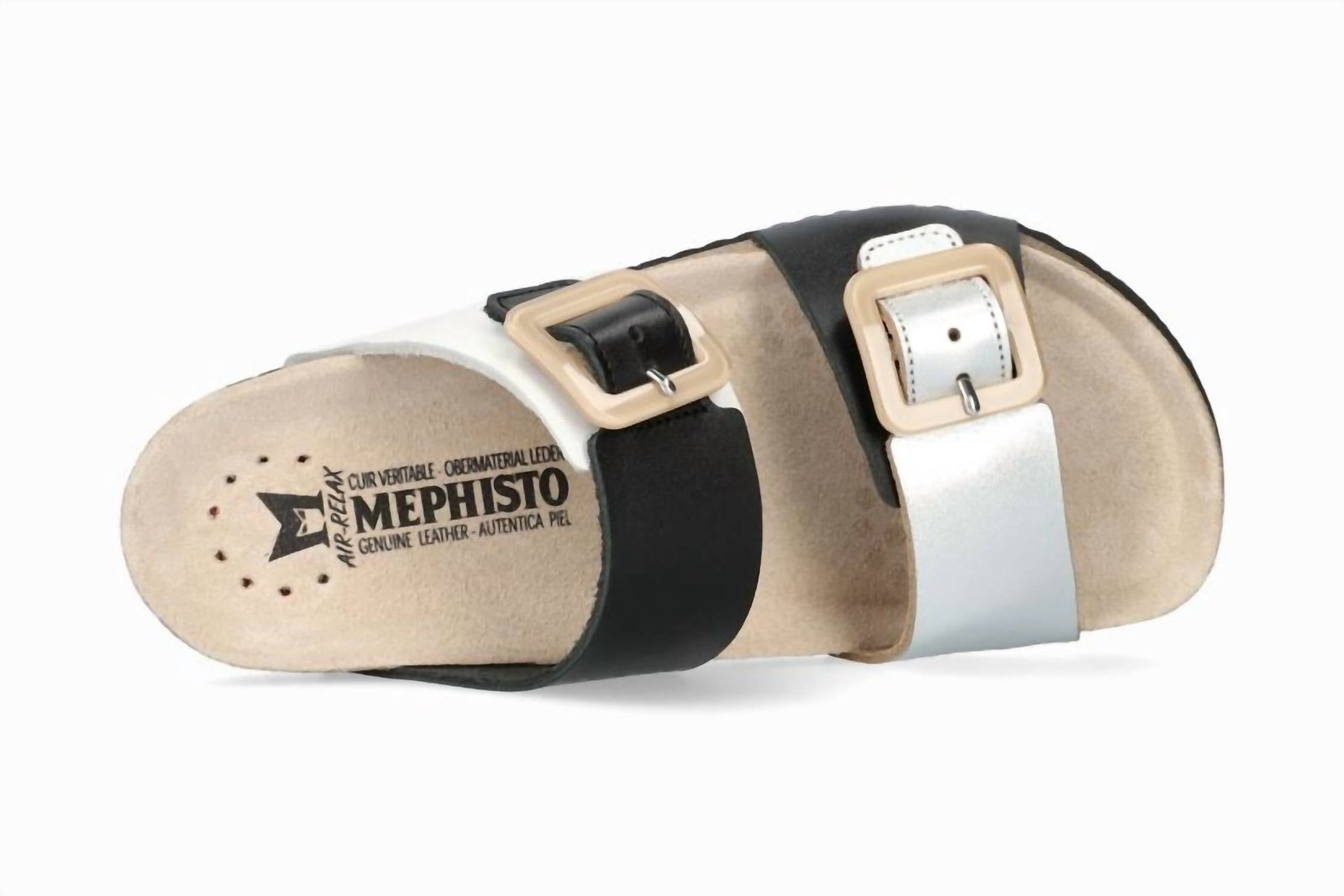 Flowy dresses, cropped pants, and even jumpsuits… this sandal works with them all!Step into sophistication with the Women’s Madison Lucite Buckle Slide Sandal by MEPHISTO, beautifully crafted in black leather. These sandals feature adjustable adhesive straps with decorative buckles, providing a customizable fit. Designed with SOFT-AIR technology in the cork foot-bed and AIR-RELAX technology, they offer unmatched comfort and support. Fastener: Hook and loop tape. Heel height: 1 inch flat heel. Ideal for women seeking flat, chic footwear, these sandals cater to the anatomy of the foot, ensuring a comfortable experience.