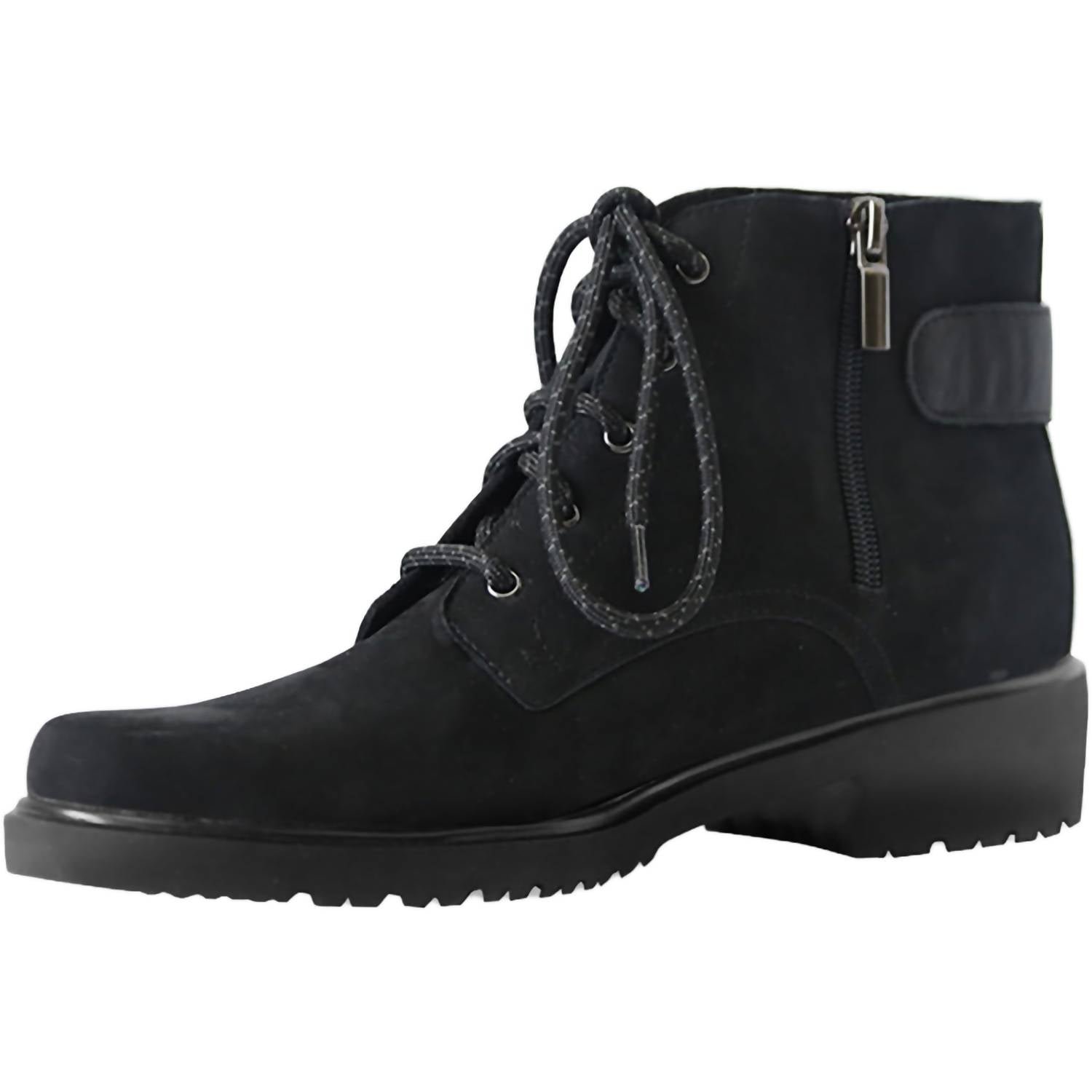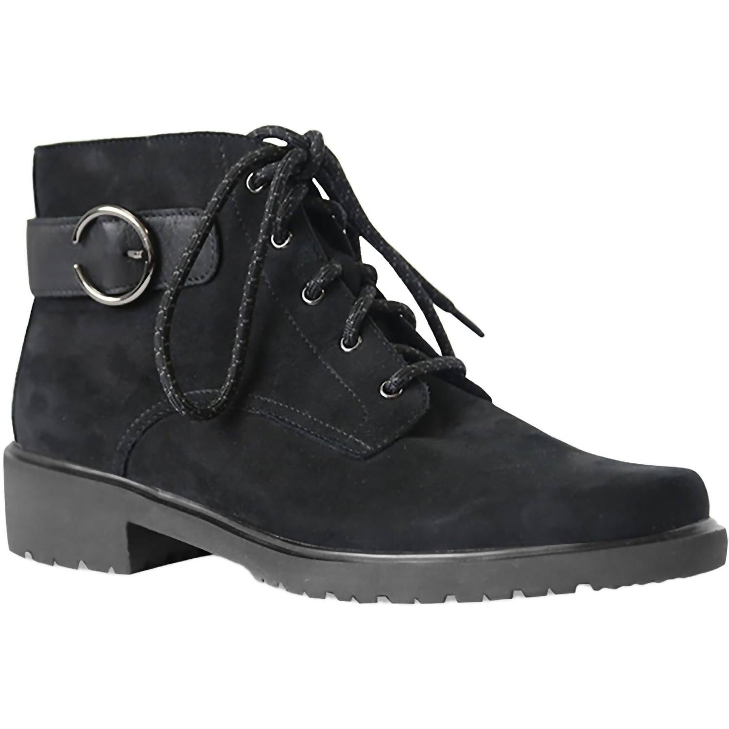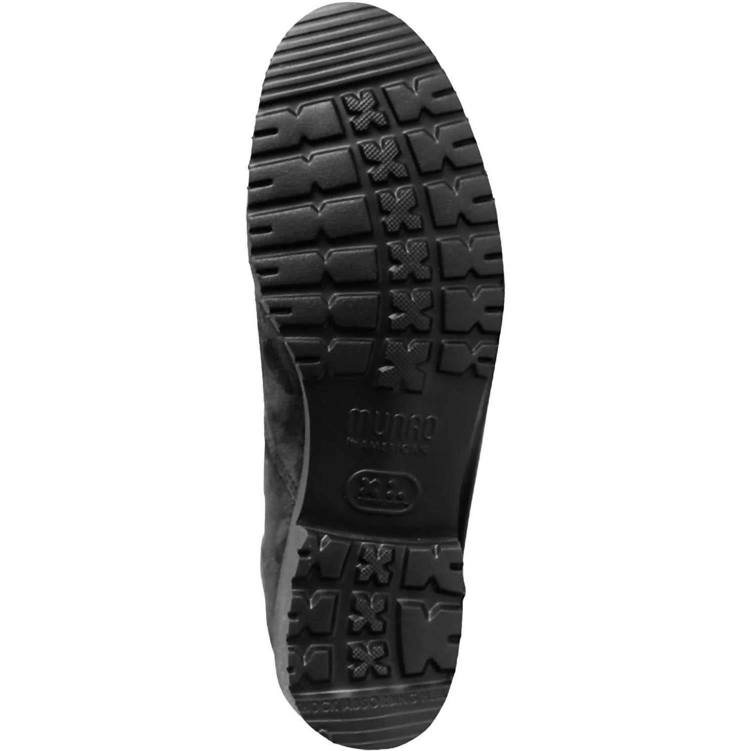 Say hello to the perfect, most versatile boot. The ankle height makes this style easily transition from day to night. Wear them with your favorite skinny jeans and tee for a more laid back look, or pair them with your favorite mini dress and jacket for a night out on the town.Step out into any adventure with the Munro Bradley II Women’s Nubuck Boots, designed for both style and functionality. These medium-width ankle boots feature a water-resistant nubuck upper and a sturdy EVA outsole, perfect for trekking through unpredictable weather. A customizable fit is ensured with lace and zipper closures, while the moisture-wicking lining and removable contoured insole elevate comfort for all-day wear. Crafted with a riveted shank and forefoot flex zone, these boots boast a chunky heel of 2 1/4′-3′ and a round toe for a modern western look.