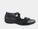 Flowy dresses, cropped pants, and even jumpsuits… this sandal works with them all!Embrace style and comfort with the Papaki Sandals by NAOT, perfect for any casual outing. These black sandals feature a unique padded front strap and a contrasting rouched design, complemented by a padded heel cup for additional support. Closure is secured with a practical hook and loop at the instep, and the sandals are true to size, with half sizes recommended to size up. The sandals fit medium width and boast a removable, anatomic cork and latex footbed wrapped in pampering suede, providing orthotic-friendly support. With a low 1′ heel height, these sandals feature a lightweight, durable, and slip-resistant polyurethane sole, all hand-sewn for flexibility. They carry the APMA Seal of Acceptance, attesting to their podiatric benefits.