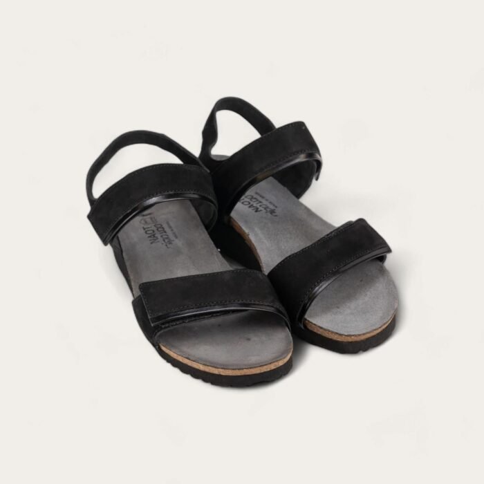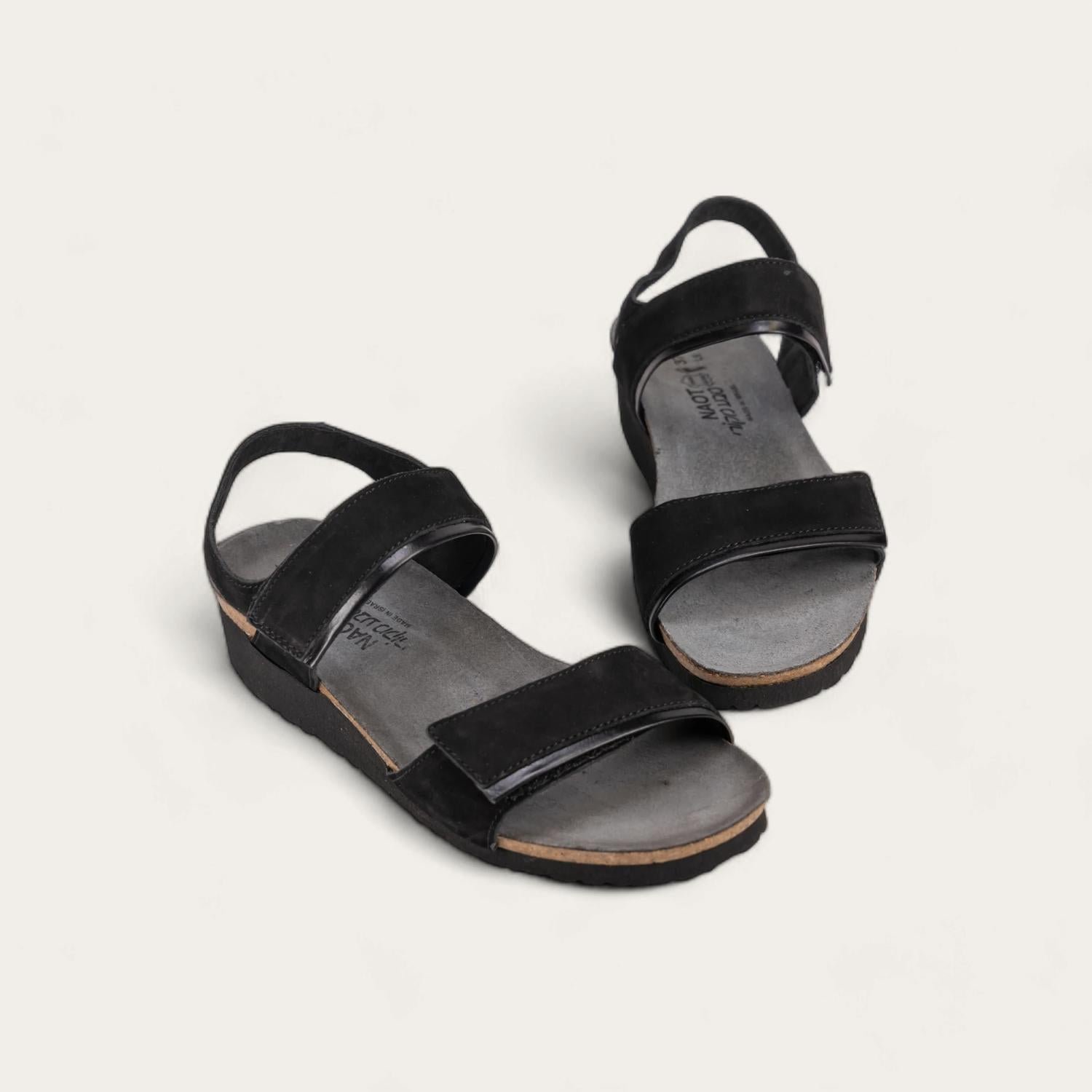 This sandal will take you from brunch to dinner and everything in between.The Aisha sandal features contrasting leather details on both straps for a stylish, edgy look. Hook-and-loop closures provide an adjustable, comfortable fit, while the full-coverage design delivers excellent support. The anatomic cork and latex footbed, wrapped in soft suede, molds to your foot over time for lasting comfort.