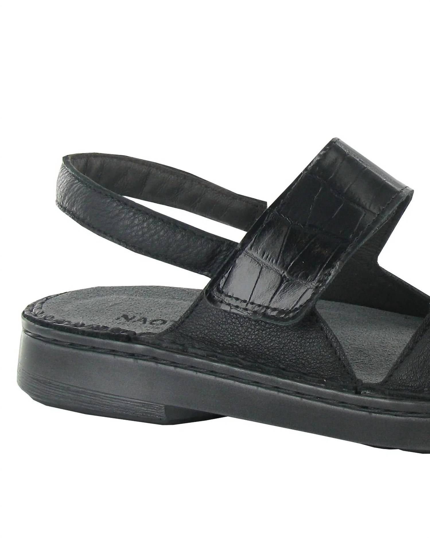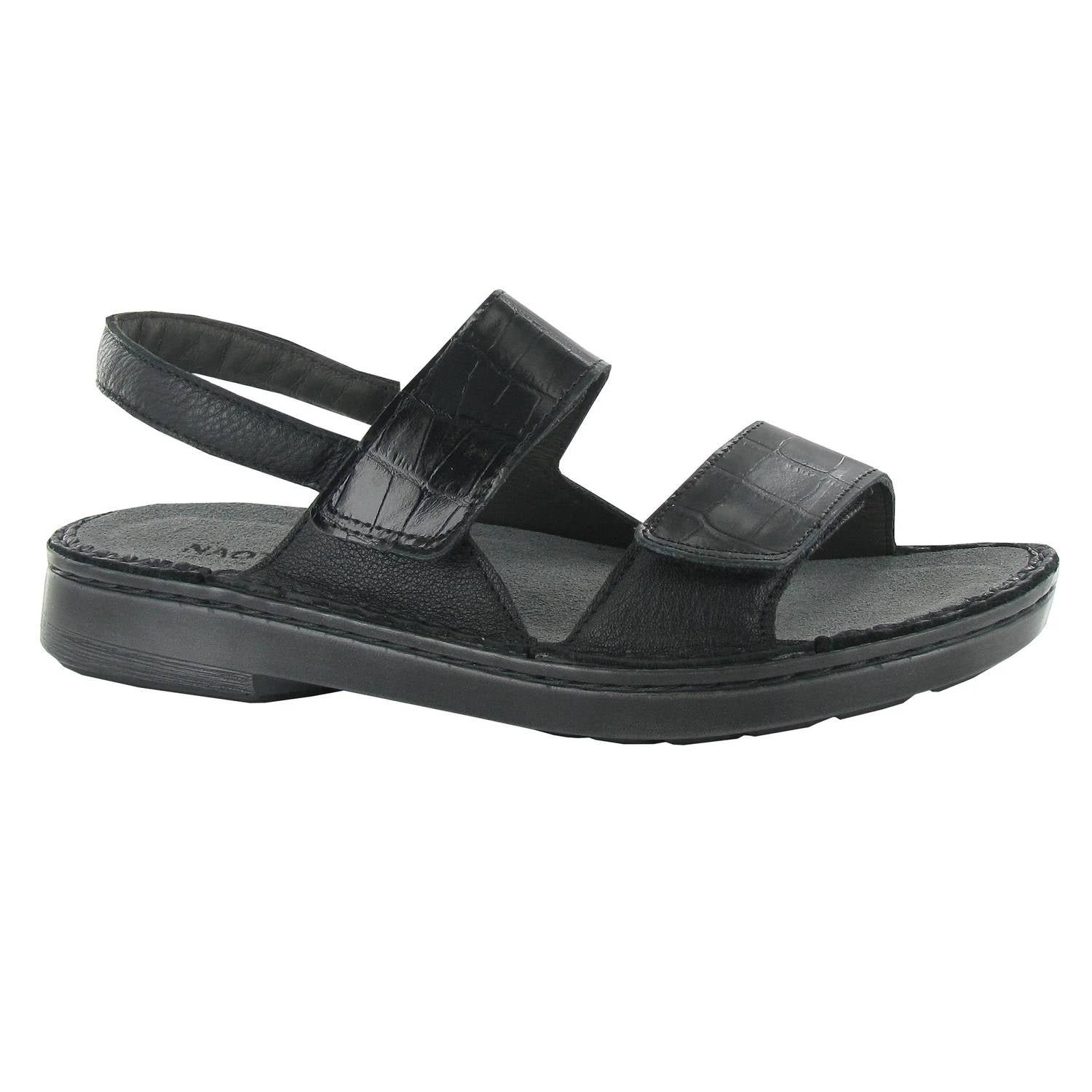 This sandal will take you from brunch to dinner and everything in between.Discover the Women’s Burgos Sandal by NAOT, a stylish and comfortable choice for summer in a soft black croc combo. Crafted from premium leather, these sandals offer complete adjustability with two hook and loop straps across the foot, ensuring the perfect fit. The lightweight 1.25′ polyurethane sole provides excellent durability, while the removable, anatomic cork and latex footbed wrapped in suede molds to your feet over time. With APMA acceptance for promoting good foot health, these sandals are both fashionable and functional.