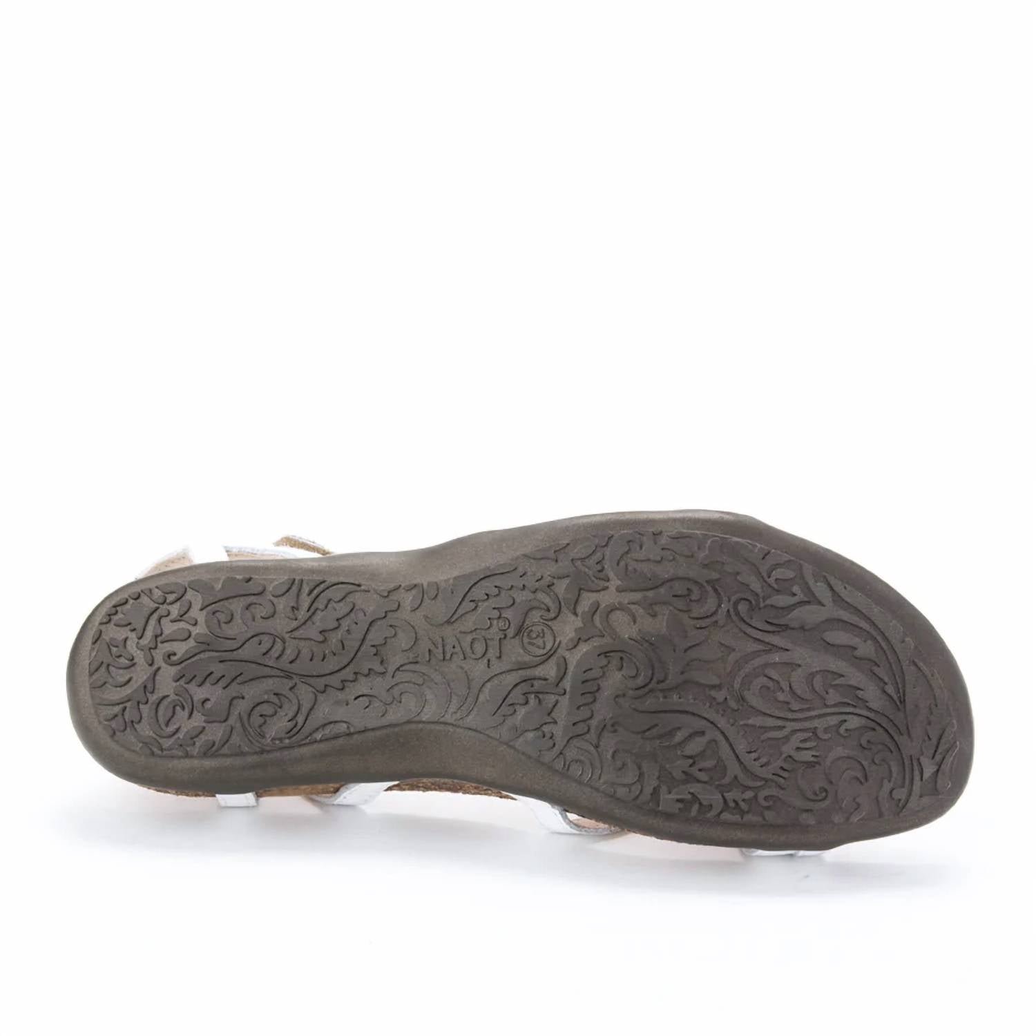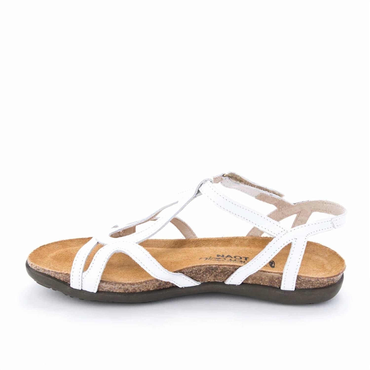 Classicly cute and all-day-wearable. We love this sandal.Step into comfort and style with the Women’s Dorith Leather Sandal by NAOT, a must-have for warm days in classic white. Crafted with a pearlized leather upper and leather lining, these sandals feature an adjustable ankle strap with a hook-and-loop closure for a customized fit. The anatomical suede-covered cork and natural latex footbed, along with arch support and deep heel indentation, provide superior comfort. These sandals are completed with an embossed rubber sole and a flat heel measuring approximately ?” in height. Designed for women seeking an effortlessly chic look, these sandals pair perfectly with a variety of summer ensembles.
