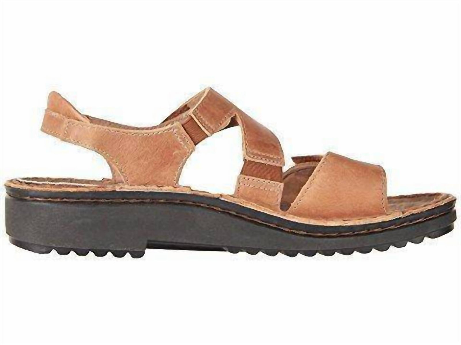 This sandal will take you from brunch to dinner and everything in between.Elevate your summer style with the NAOT Women’s Enid Leather Sandal in Latte Brown, perfect for boho chic dinner parties and sunlit adventures. This sandal features a leather upper with hook-and-loop straps and goring for a comfortable, customizable fit. Designed with a breathable leather lining and a removable, suede-covered cork and latex footbed, it offers all-day cushioned comfort. Crafted with a durable rubber outsole, this flat heel sandal with an open toe design is imported and ready to be your go-to summer accessory.