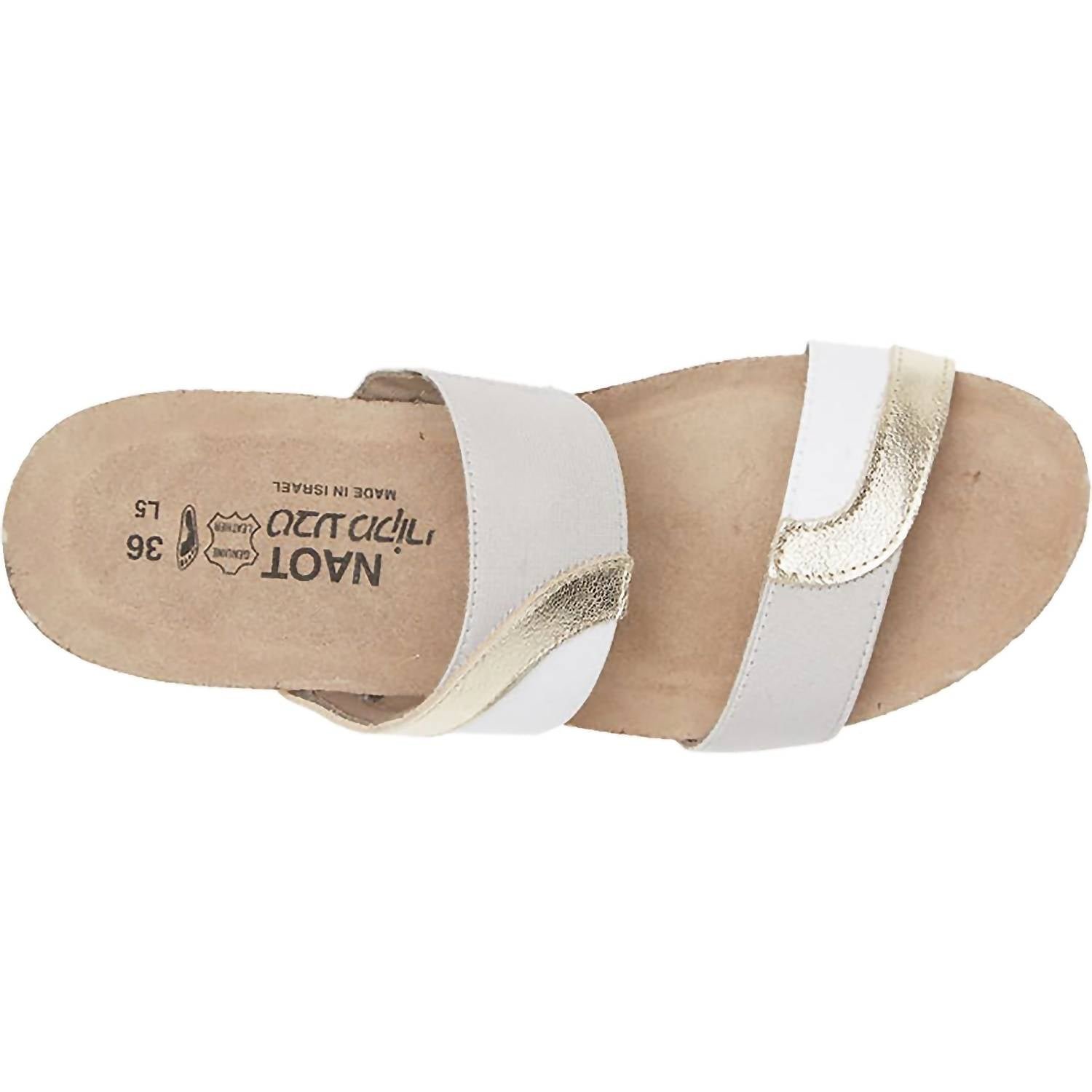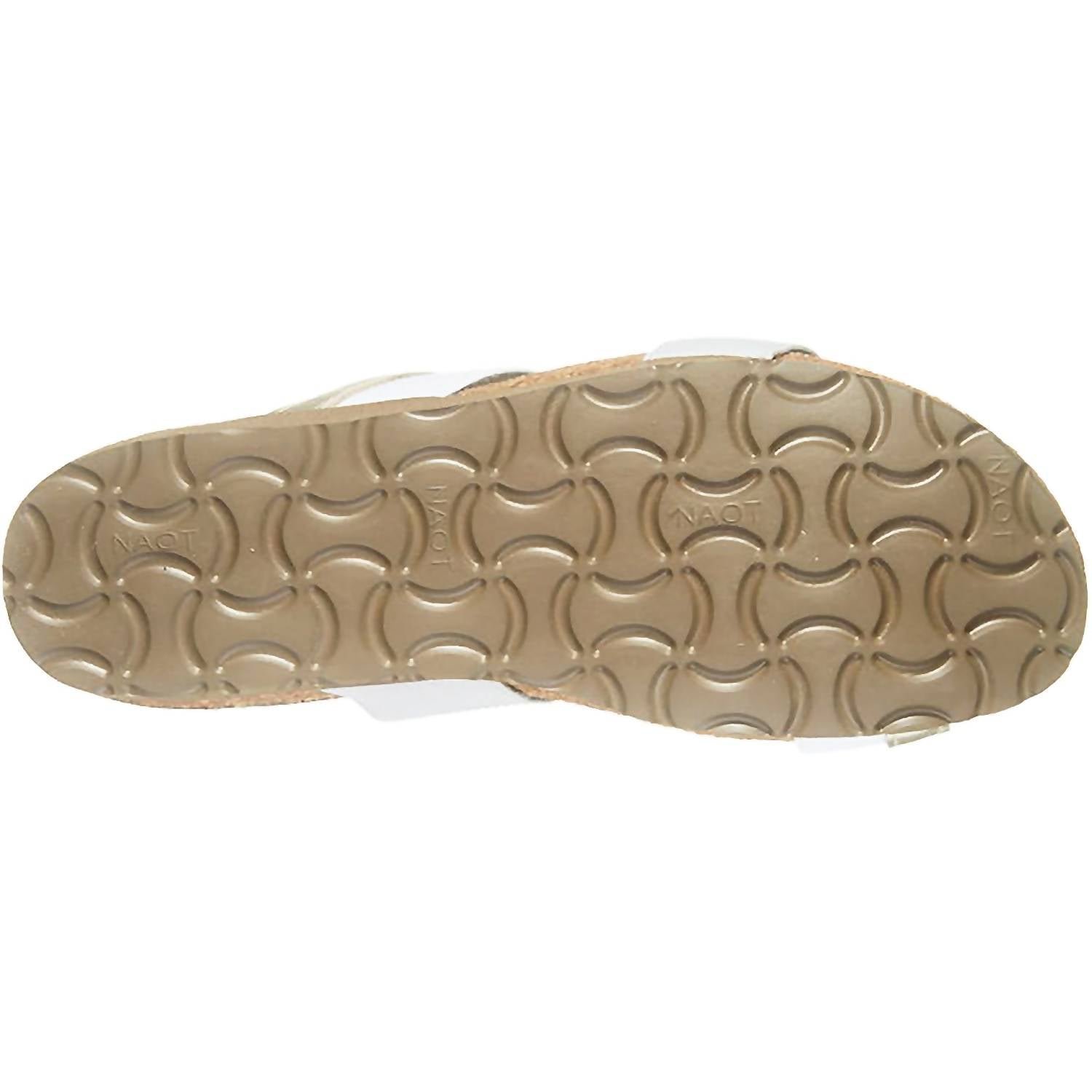 Classicly cute and all-day-wearable. We love this sandal.Step out in style and comfort with the Women’s Frankie Leather Sandals by NAOT, a boho chic essential in Radiant Gold/Ice Grey. Crafted from leather and featuring an elastic upper, these sandals boast a 1.5′ EVA wedge heel for a subtle lift. The anatomic cork and latex footbed, wrapped in suede, conforms to your foot shape, delivering unparalleled comfort with each wear. Perfect for a casual summer vacation, these sandals offer a medium width fit and feature padded technical lining for moisture absorption and enhanced all-day comfort.