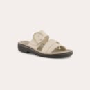 Flowy dresses, cropped pants, and even jumpsuits… this sandal works with them all!Discover the Women’s Frey Sandal by NAOT, a minimalist yet stylish choice in ivory leather. This slip-on sandal features a buckle accent and an open toe design, perfect for summer vacations. With a low 1.5′ flat heel and a lightweight 0.5′ platform, it boasts a removable, anatomic cork and latex footbed wrapped in suede for comfort and orthotic-friendly support. The sandals carry the APMA Seal of Acceptance and fit true to size, making them an excellent addition to your collection of vacation essentials.