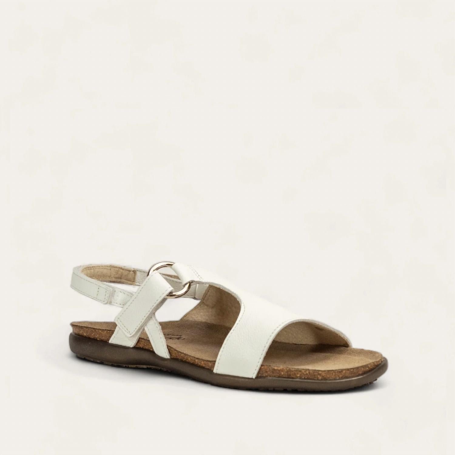 Classicly cute and all-day-wearable. We love this sandal.This sandal features a leather material with an open toe design, accented by a handy hook and loop ankle strap for adjustability. It includes Naot’s anatomic cork and latex footbed wrapped in suede, which molds to your foot shape for added comfort. With a 0.75′ TPR sole, it’s perfect for those seeking style in a narrow to medium width fit.