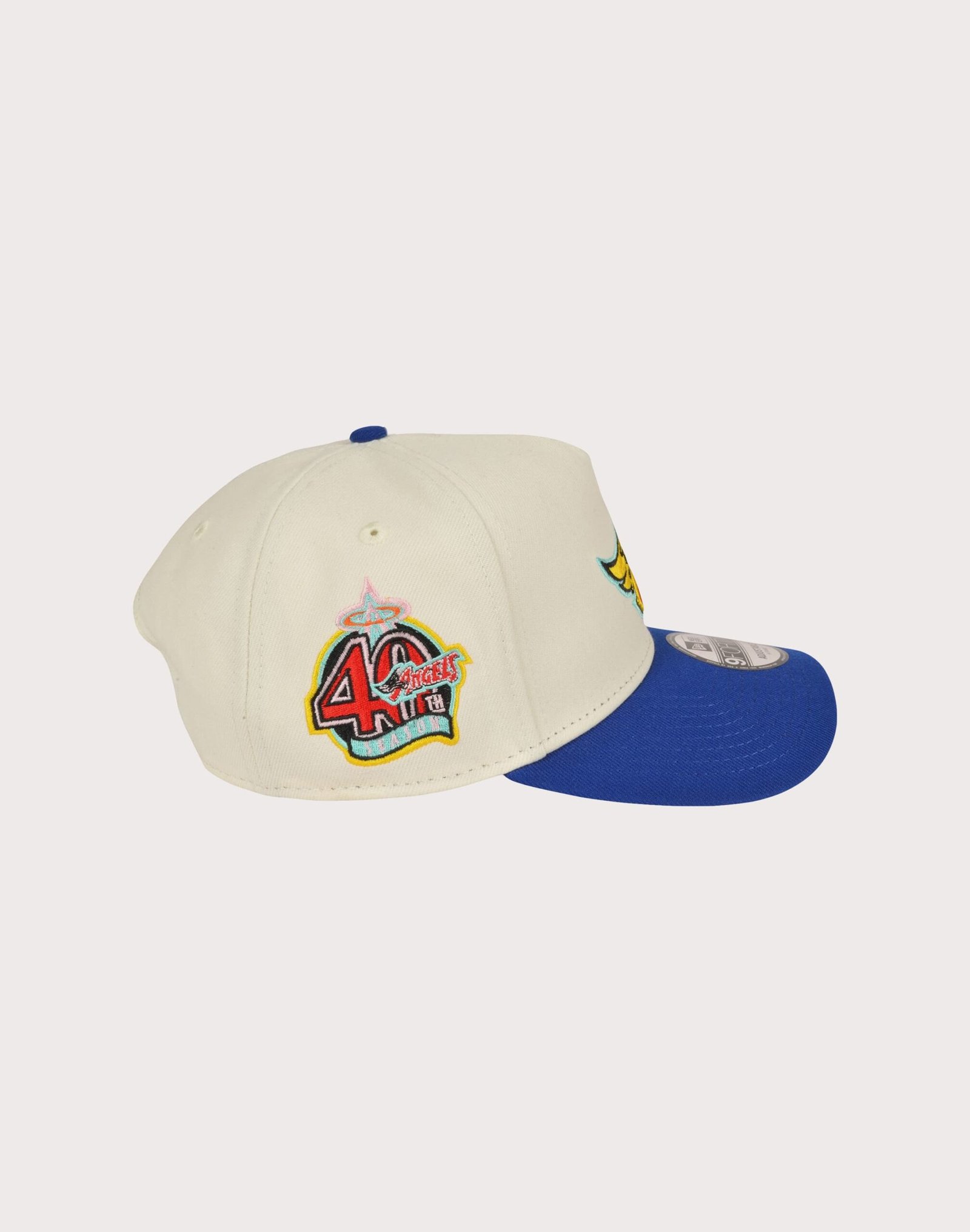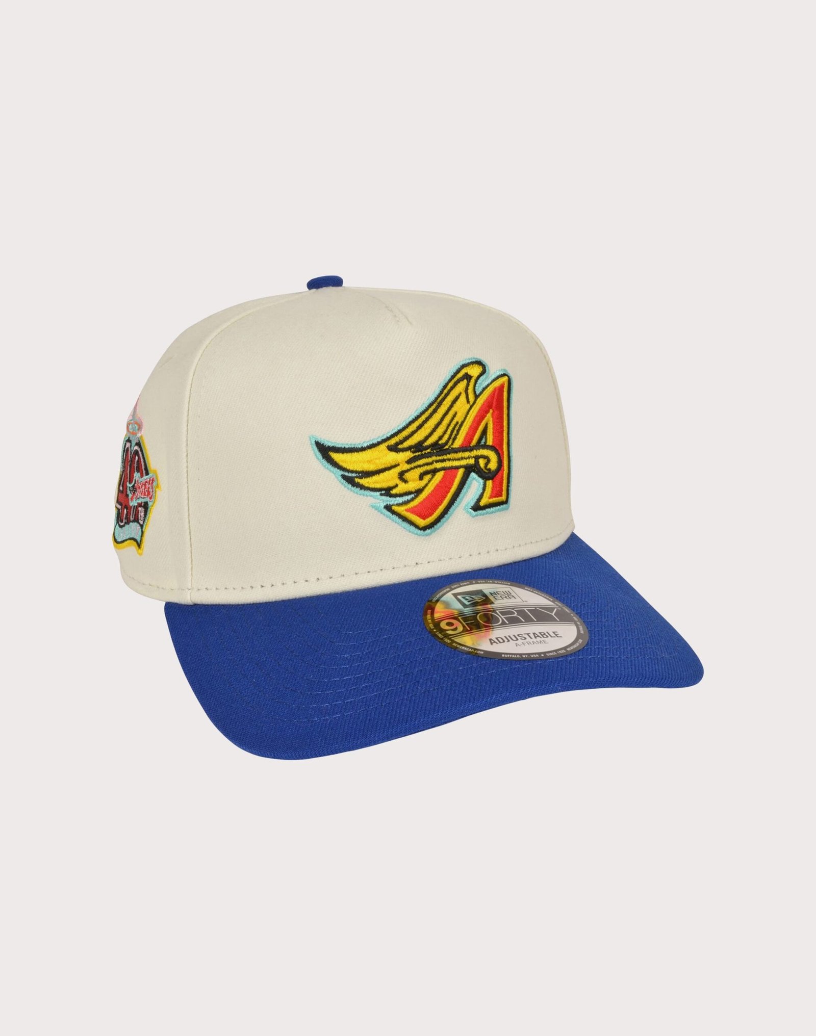 Show off your Angels spirit with the Men’s New Era Los Angeles Angels 9FORTY A-Frame Packman Snapback Hat-Beige/Blue, featuring a sleek Angels patch on the front panel. Designed for a versatile and comfortable fit, this A-Frame style cap comes with a pre-curved visor and an adjustable Snapback closure to suit any head size. The structured yet flexible crown provides a snug fit, while the bold team logo and 40th Season side patch add a statement to your everyday look. Grab yours today!