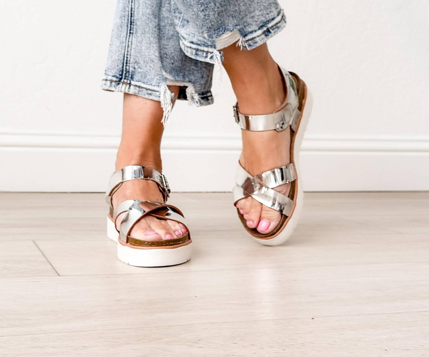 This sandal will take you from brunch to dinner and everything in between.Elevate your vacation style with the Women’s Oetter Sandal by Not Rated, featuring a metallic pewter upper and a secure buckle ankle closure. This sandal boasts an open toe and minimalist design in a sophisticated silver color. Made of high-quality leather, it offers a padded cupped footbed and a comfortable flat heel with a low height of 1 1/4′-2′. Perfect for spring, it fits true to size, though sizing up is recommended if you’re between sizes.