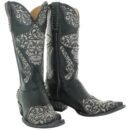 Upgrade your shoe game with these classic heeled boots, designed to merge sophistication and style. Comfortable enough for long days or a night out on the town.Embrace a playful yet bold style with the Women’s L&L Shooter Boots by OLD GRINGO. These black heeled boots are artfully crafted with distressed leather and feature intricate embroidery, studs, and a striking skull motif wearing a sombrero. Designed with a snip toe, a comfortable 1.625′ heel, and 13′ shaft height, these boots include pull tabs for easy wear. These fashion-forward boots will be a standout addition to your footwear collection.