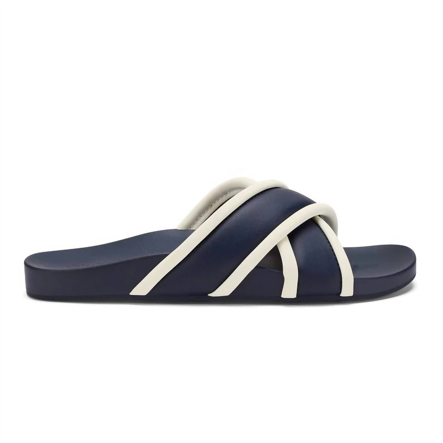 Flowy dresses, cropped pants, and even jumpsuits… this sandal works with them all!Step into effortless style and comfort with the Women’s Ani Beach Sandal by OluKai, an ideal choice for vacations, poolside lounging, or relaxing strolls. These sandals feature quick-drying, water-friendly criss-cross straps in a chic Mood Indigo/White Sand color, ensuring both security and style. Enjoy the lightweight, cushioned footbed that molds to your feet for unmatched comfort, coupled with a non-slip Wet-Grip Rubber outsole for superior traction. Ideal for women seeking versatile summer footwear, they accommodate any warm weather occasion with ease.