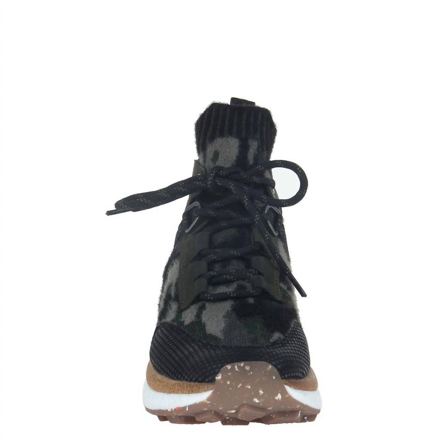 When fashion and function come together seamlessly.Introducing the Women’s Hybrid Print Sneakers by OTBT, crafted with a breathable stretch knit and a wild mix of leathers and prints. These sneakers feature a soft sock-like high top, a round toe, and a sporty outdoor utility style. Engineered for ultimate comfort with Travel Lite? Step Lite foam and a removable EVA footbed, they boast a 1.77′ platform heel and a 1.1′ platform. Originating from China, they slip on easily with bicolor hiker laces and a recycled rubber lug sole, perfect for adventurous fall outings.