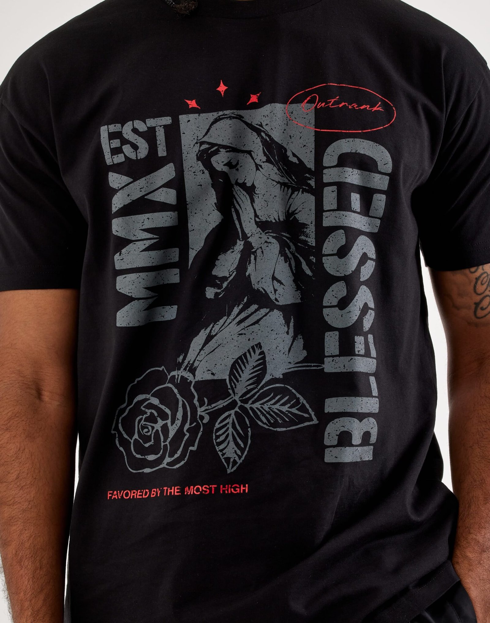 Tie your look together with the Blessed Tee from Outrank. Crafted from soft, breathable cotton, this men’s graphic T-shirt will keep you comfortable and stylish in any situation.
