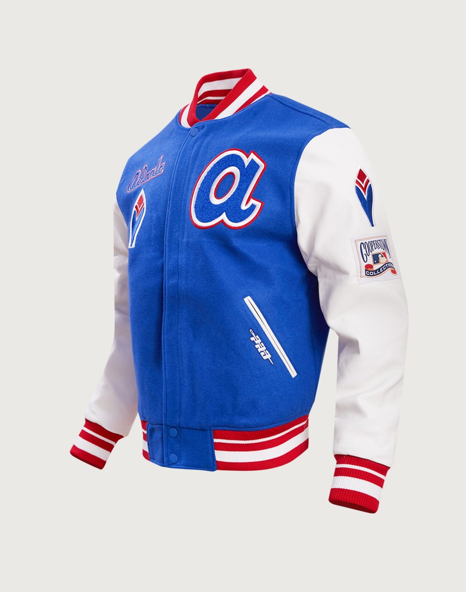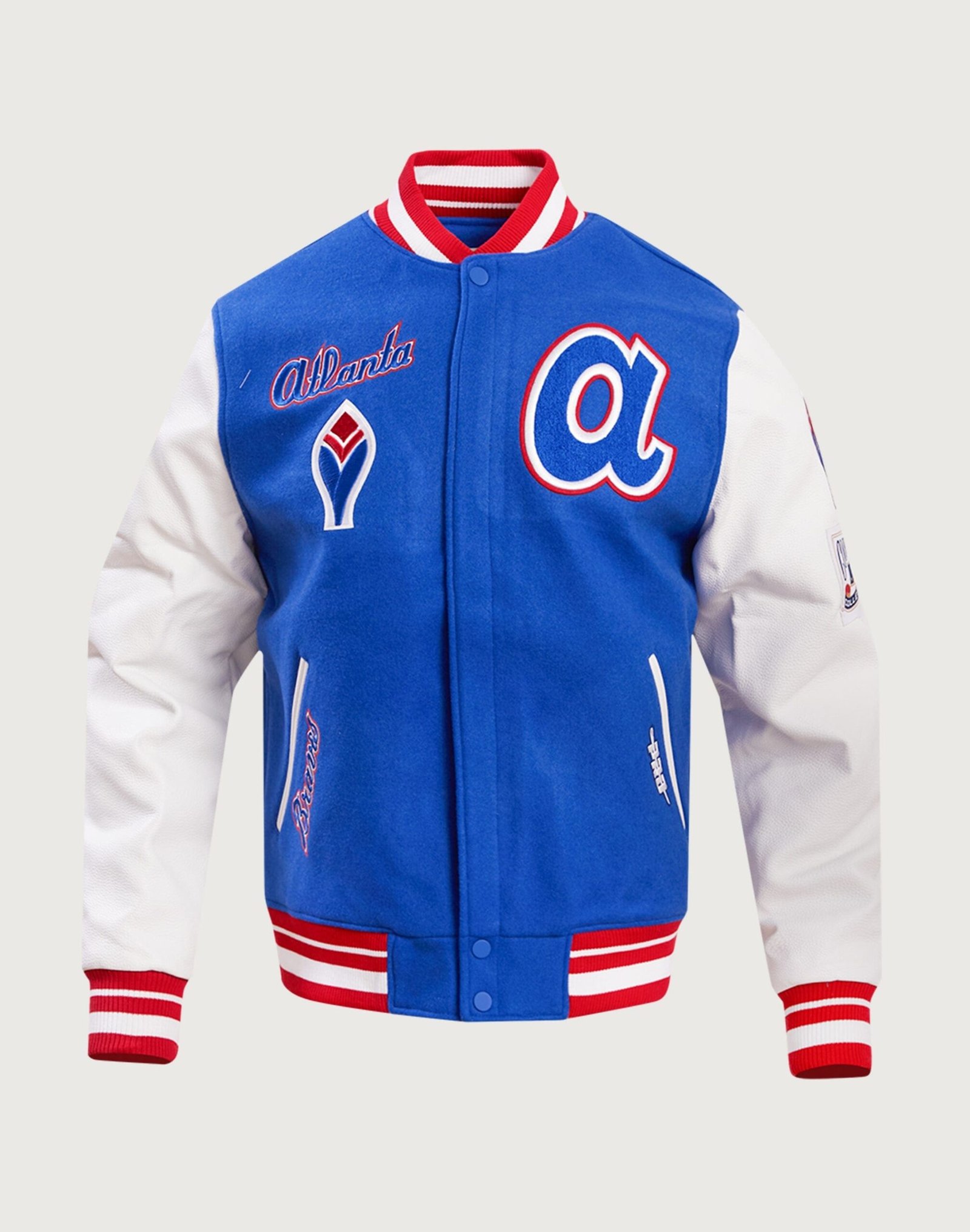 The Pro Standard Atlanta Braves Retro Classic Rib Wool Varsity Jacket brings a timeless varsity look to your Braves fandom, featuring premium wool construction with embroidered team patches for standout style. This jacket??s ribbed cuffs and collar provide a snug, comfortable fit, making it perfect for chilly game days or everyday wear.