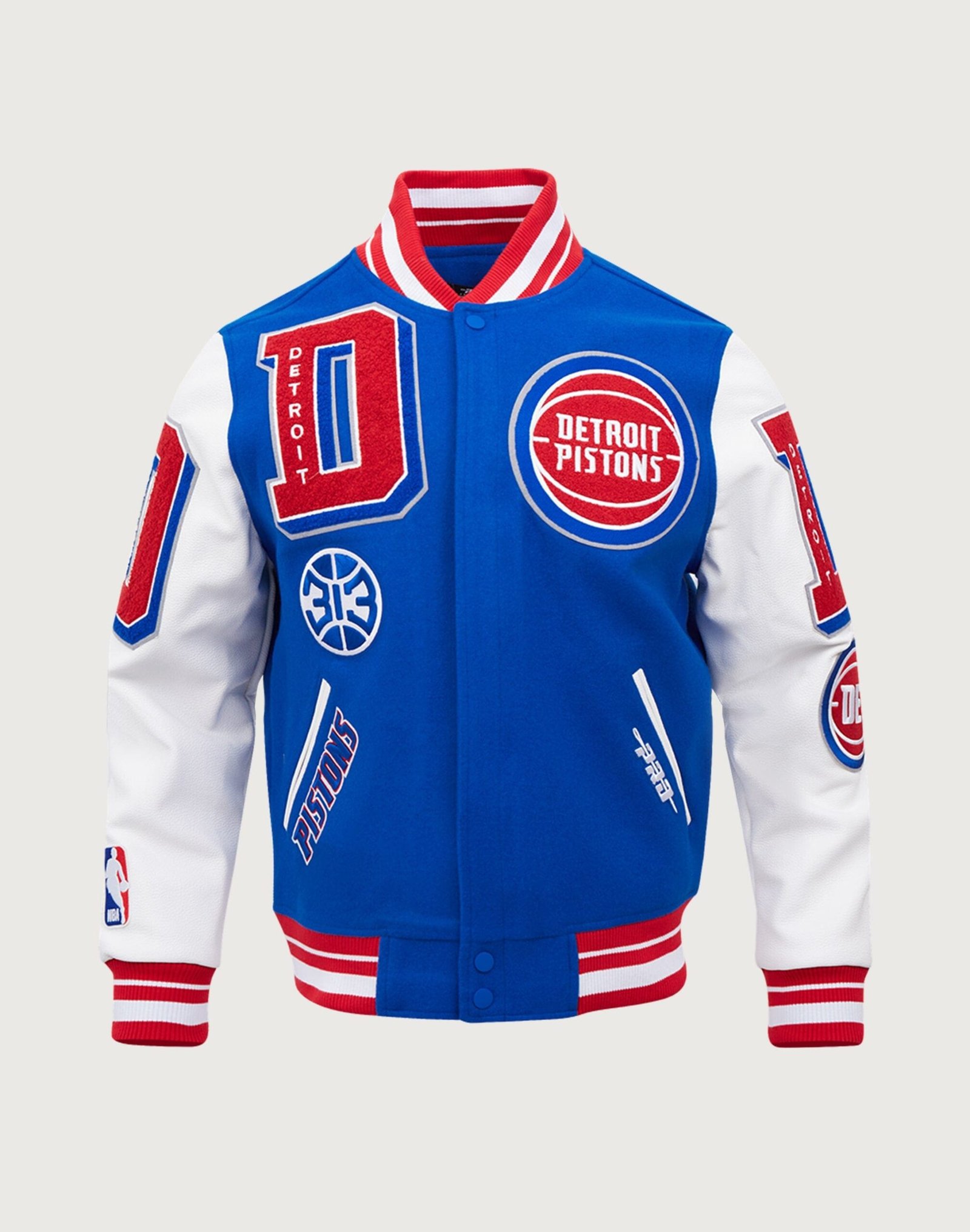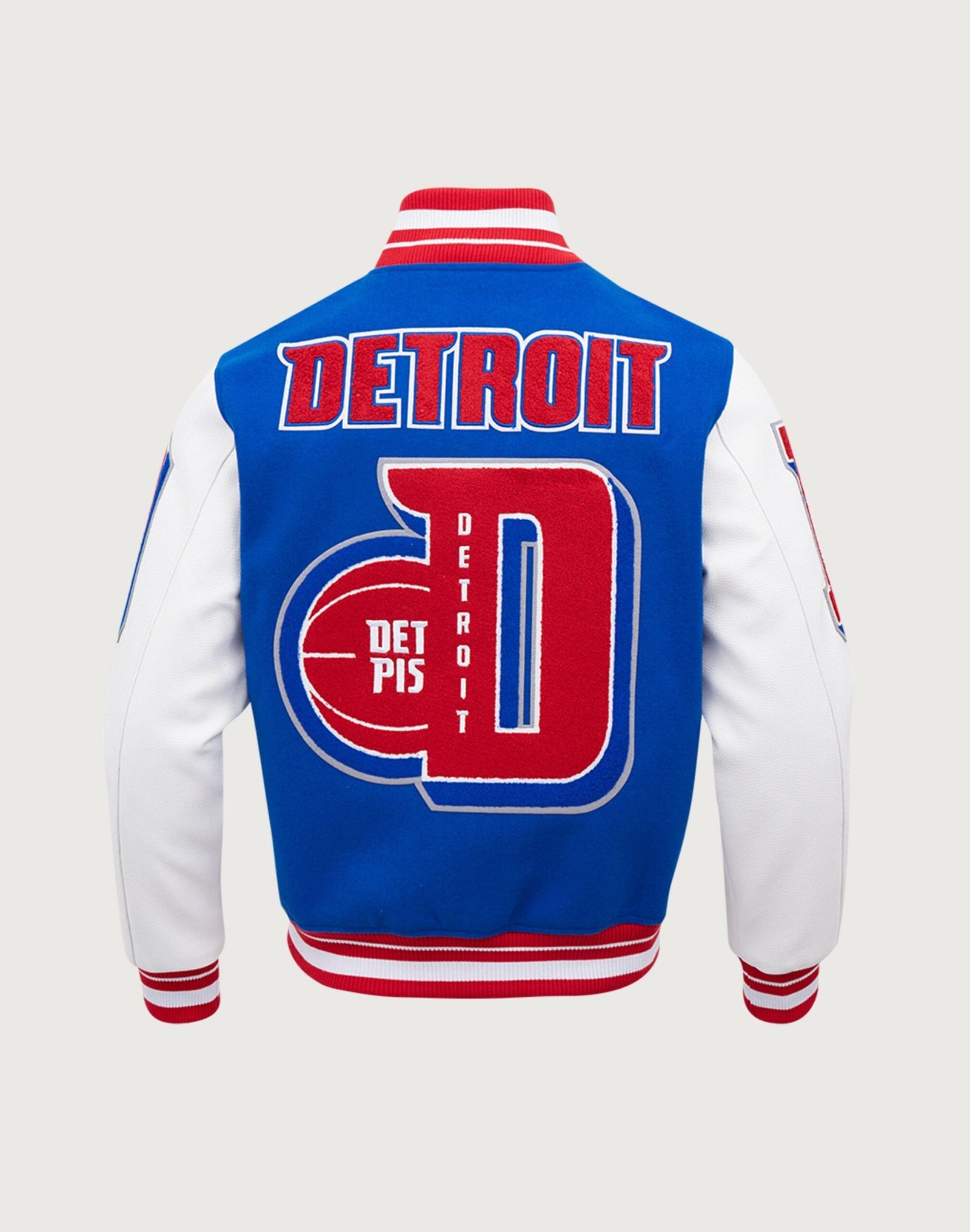 The Pro Standard Detroit Pistons Retro Classic Rib Wool Varsity Jacket brings a timeless varsity look to your fandom, featuring premium wool construction with embroidered team patches for standout style. This jacket??s ribbed cuffs and collar provide a snug, comfortable fit, making it perfect for chilly game days or everyday wear.