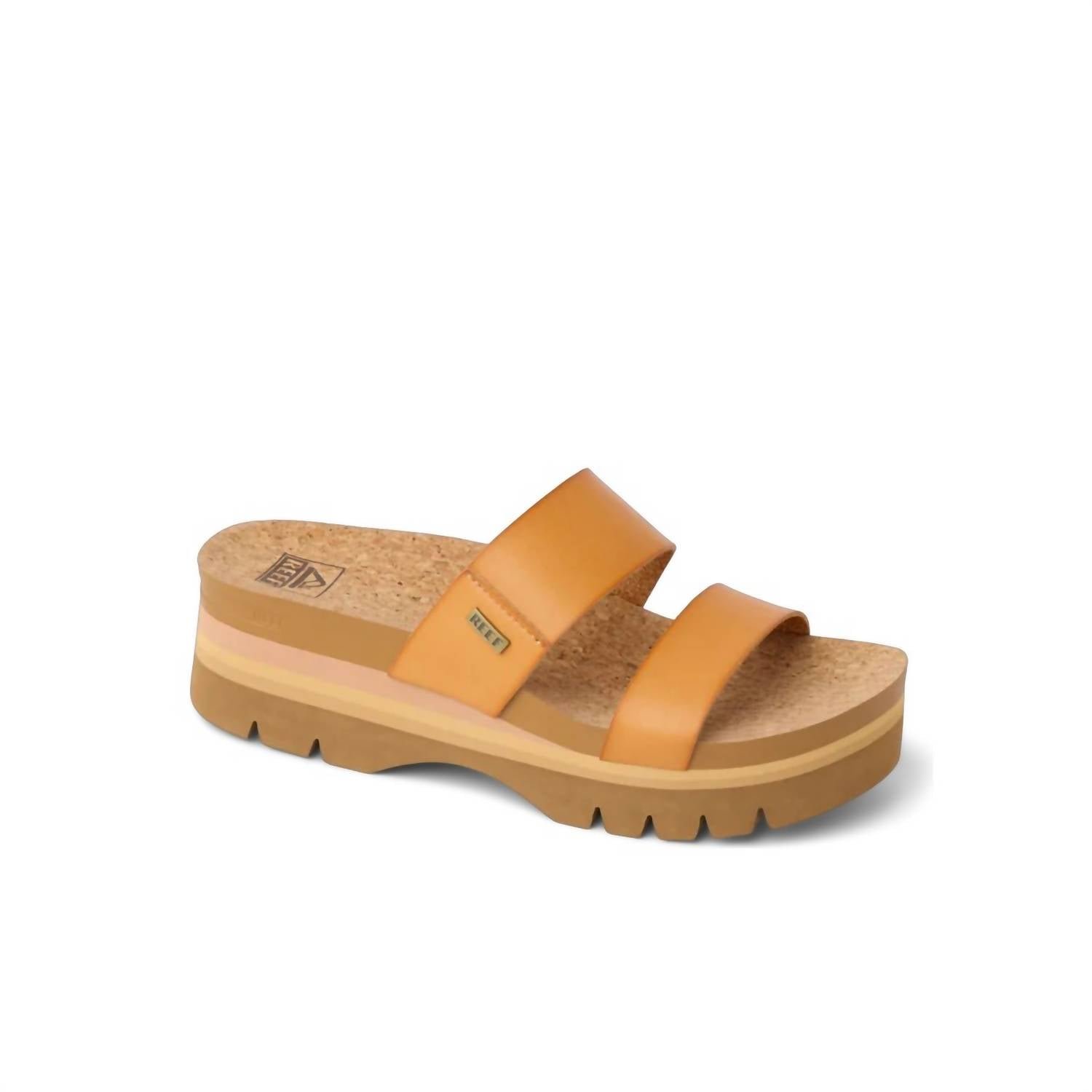 Flowy dresses, cropped pants, and even jumpsuits… this sandal works with them all!Step up your style game with the REEF Women’s Cushion Vista Hi Sandals, a must-have for your summer wardrobe. Featuring super soft, unlined PVC-free vegan faux leather with a stylish two-strap design, these sandals offer both comfort and sustainability. The anatomically contoured footbed ensures excellent stability with generous arch support, while the lightweight, durable chunky lug EVA outsole adds a trendy 90s vibe. With a 2.52-inch heel height, these sandals are perfect for vacation occasions and Easter celebrations.