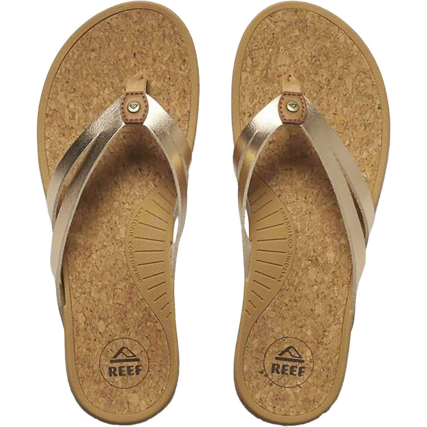 Classicly cute and all-day-wearable. We love this sandal.Introducing the Women’s Pacific Joy Sandals by REEF, perfectly designed for a stylish beach day in a Golden Hour hue. These sandals feature PVC-free vegan faux leather straps and a double strap design, merging sophistication with elegance. The footbed is crafted from super soft compression molded EVA with a high-character vegan leather cover, ensuring all-day support. With a non-marking rubber cupsole inspired by California palm trees, these sandals boast enhanced traction and durability. Enjoy eco-friendly style with a toe post made from 100% recycled PET. Ideal for summer, these open-toe sandals embody the Quiet Luxury trend. Perfect for women seeking comfort and style in a flat heel design.