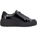 A classic loafer that is both comfortable and polished.Introducing the RIEKER N2501 Women’s Crashlack Patent Leather Shoes in Nero/Schwarz/Black, a minimalist design perfect for fall travel and Thanksgiving gatherings. These versatile flats combine chic patent leather uppers with a manageable 2-inch flat heel for effortless style. Featuring a convenient zip/lace closure and Rieker’s Anti-Stress footbed, they ensure all-day comfort. With a textile lining and removable cushioned insole, these shoes offer both comfort and practicality for medium-width feet.