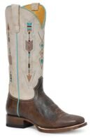 Say hello to the perfect, most versatile boot. The ankle height makes this style easily transition from day to night. Wear them with your favorite skinny jeans and tee for a more laid back look, or pair them with your favorite mini dress and jacket for a night out on the town.For a blend of style and practicality, the Women’s Leather Sole Square Toe Boot by ROPER is an excellent choice. This Western-inspired ankle boot features a brown and white cowhide full grain leather upper with distinctive embroidered arrows, perfect for elevating any look. Its squared toe design is complemented by a block heel with a height of approximately 1 1/4′ to 2′, offering both comfort and fashion. Complete with a REST removable insole and leather lining, this boot ensures all-day cushioning and durability.