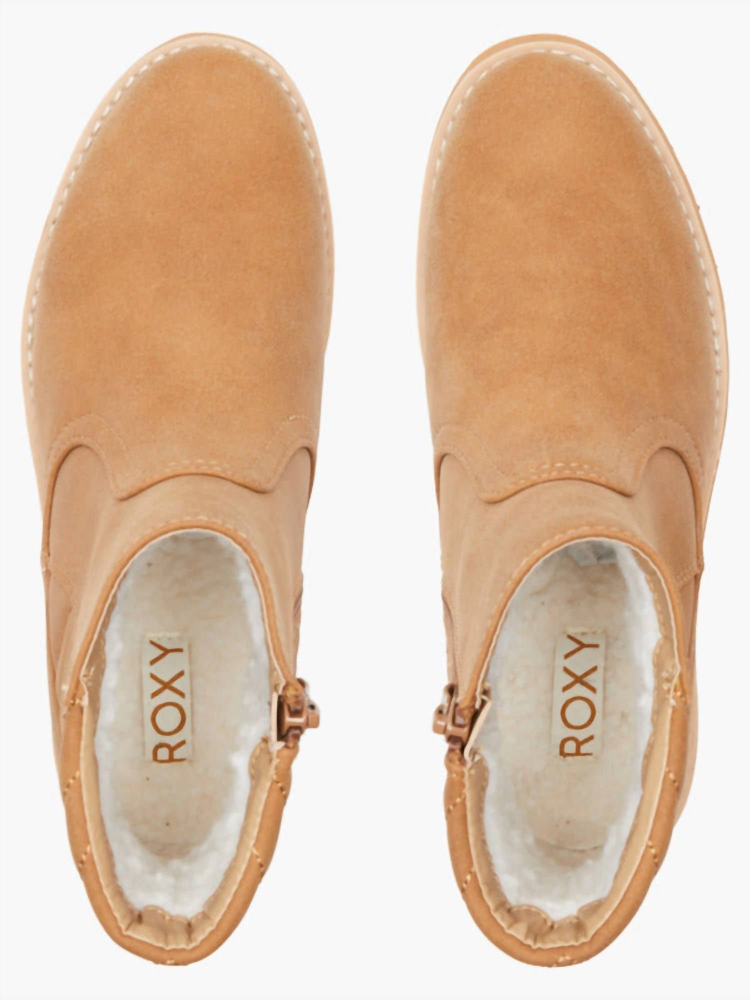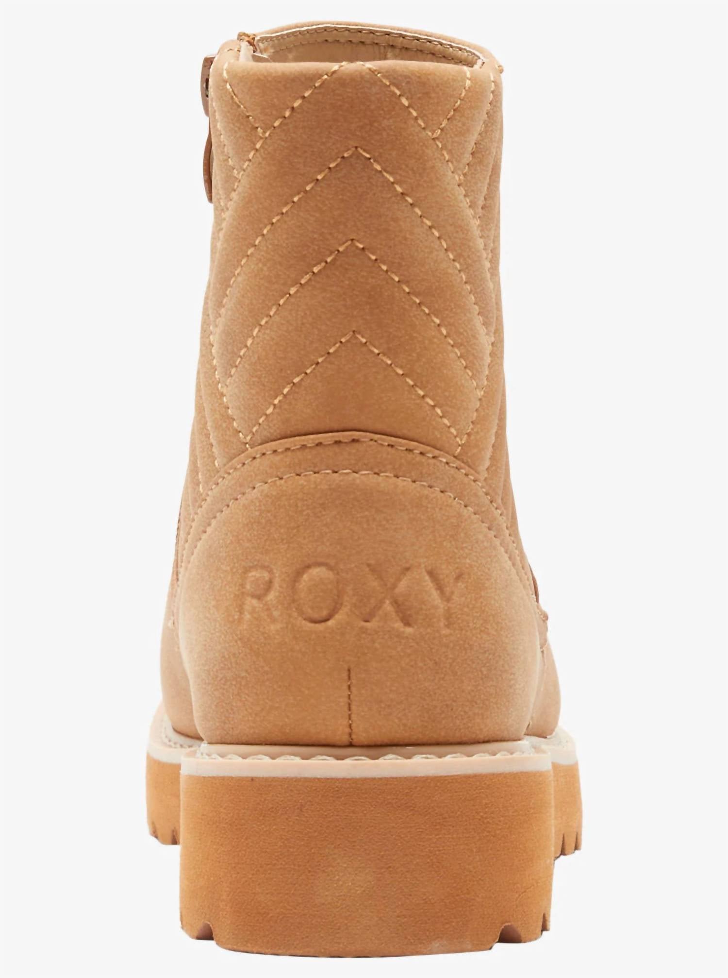 Say hello to the perfect, most versatile boot. The ankle height makes this style easily transition from day to night. Wear them with your favorite skinny jeans and tee for a more laid back look, or pair them with your favorite mini dress and jacket for a night out on the town.Step into comfort and style with the Women’s Jovie Fur II Boot by ROXY, crafted in a tan synthetic faux-leather blend. The slip-on design features a quilted heel detail and a convenient medial zipper, complemented by a cozy sherpa footbed and lining for ultimate warmth. Waterproof with 5K DryFlight? technology, these boots offer a cushioned foam midsole and an updated aggressive Roxy Alpine TPR lug bottom. Composition includes 98% Synthetic PU and 2% Metal Rivet, with a 38 mm heel height, making it ideal for all-day wear.