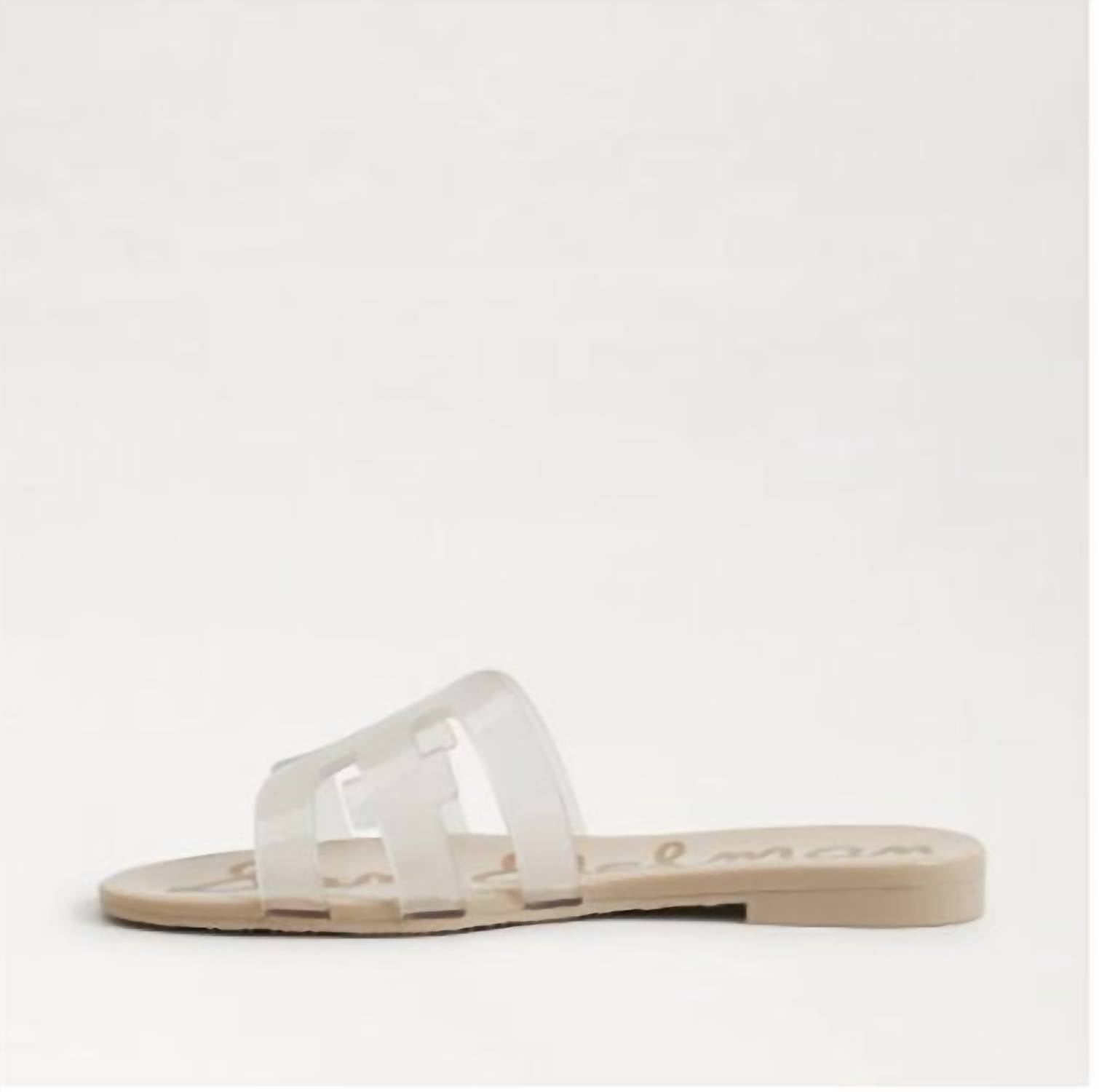Flowy dresses, cropped pants, and even jumpsuits… this sandal works with them all!Step into style with the Women’s Bay Jelly Slide Sandal by Sam Edelman in a chic clear/sand colorway. These sandals feature a flat heel height of 0.5 inches and are crafted from modern PVC material for a shiny finish. Designed as a slip-on, they are available in whole sizes, with advice to order the next size down if you’re a half size. Ideal for summer vacations or Easter celebrations, these minimalist slides are a fashionable choice for any warm-weather occasion.