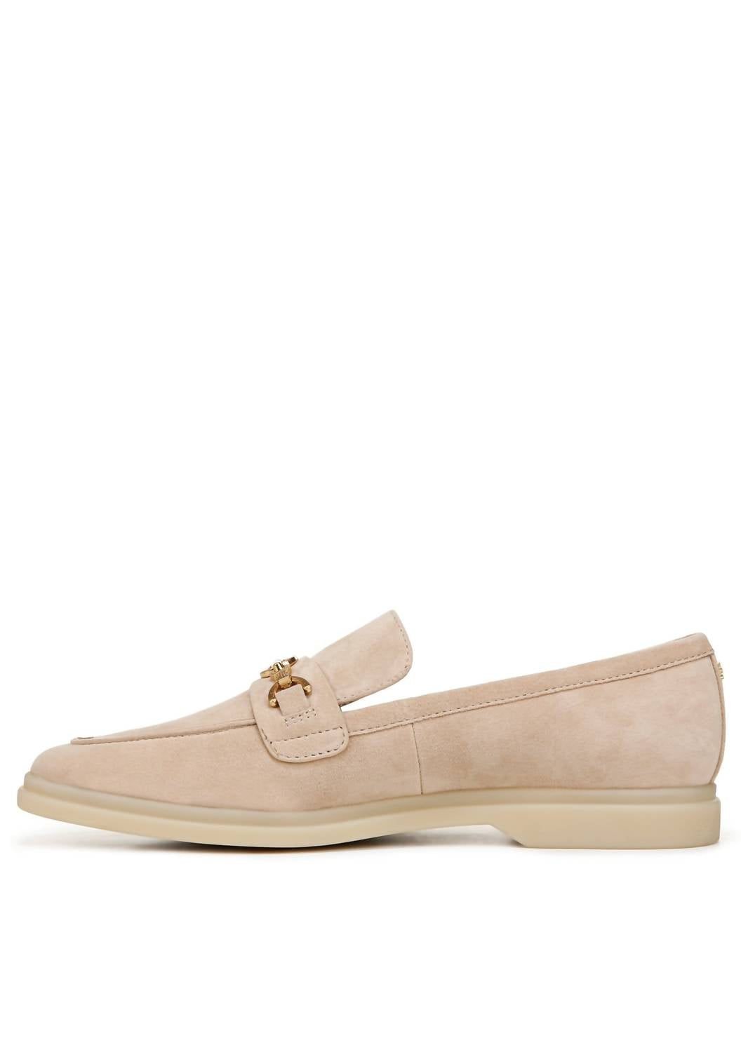 A classic loafer that is both comfortable and polished.Step into sophistication with the Kyana Bit Loafer by Sam Edelman in elegant Oat Beige Suede. Perfect for any occasion, this loafer showcases a distinctive logo bit detail and a contrasting sole. Crafted from high-quality leather and suede, it features an almond toe and a comfortable flat heel with a 0.75-inch height. Ideal for adding an equestrian touch to your Spring wardrobe, for workwear, or holiday parties.