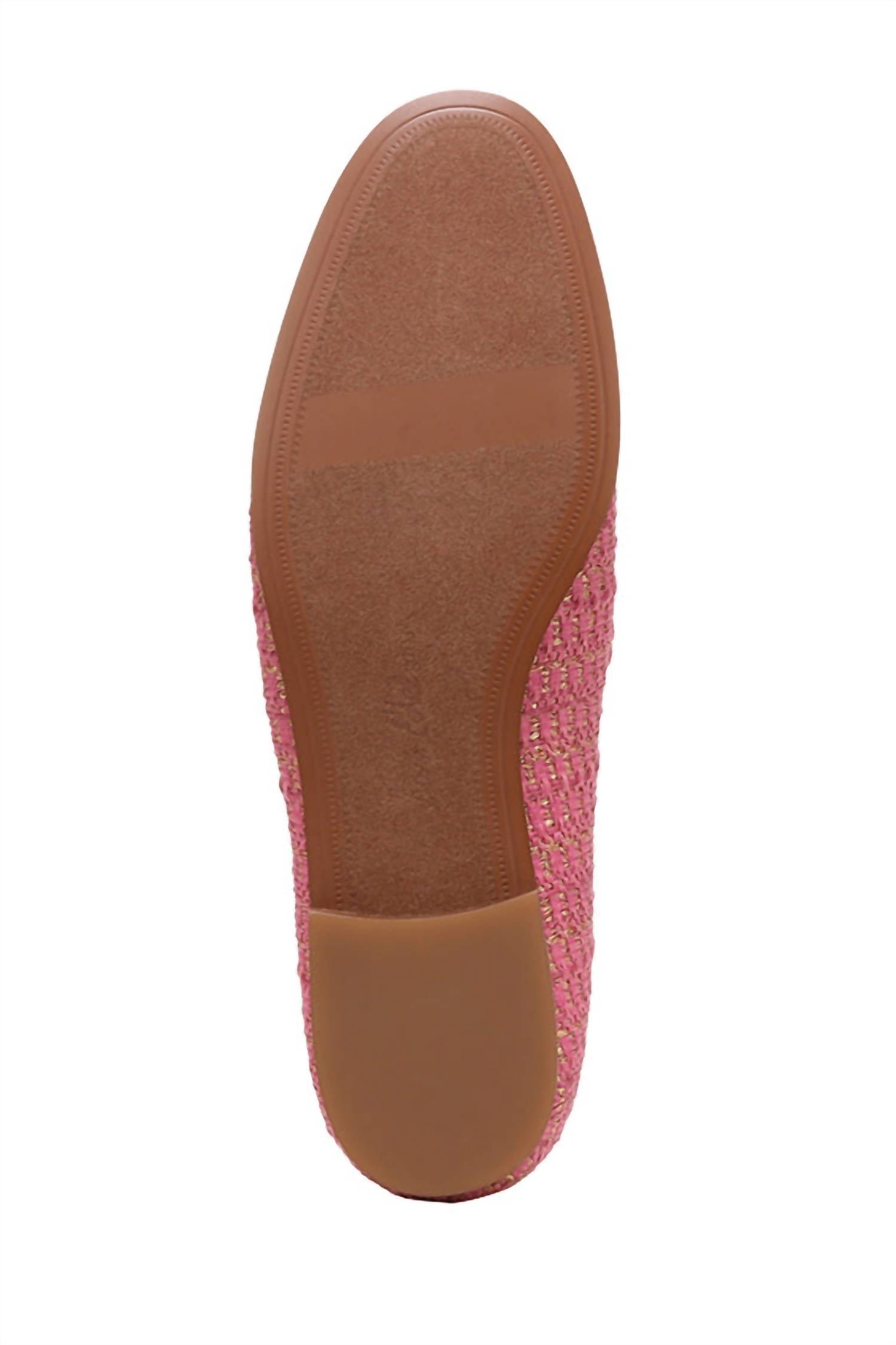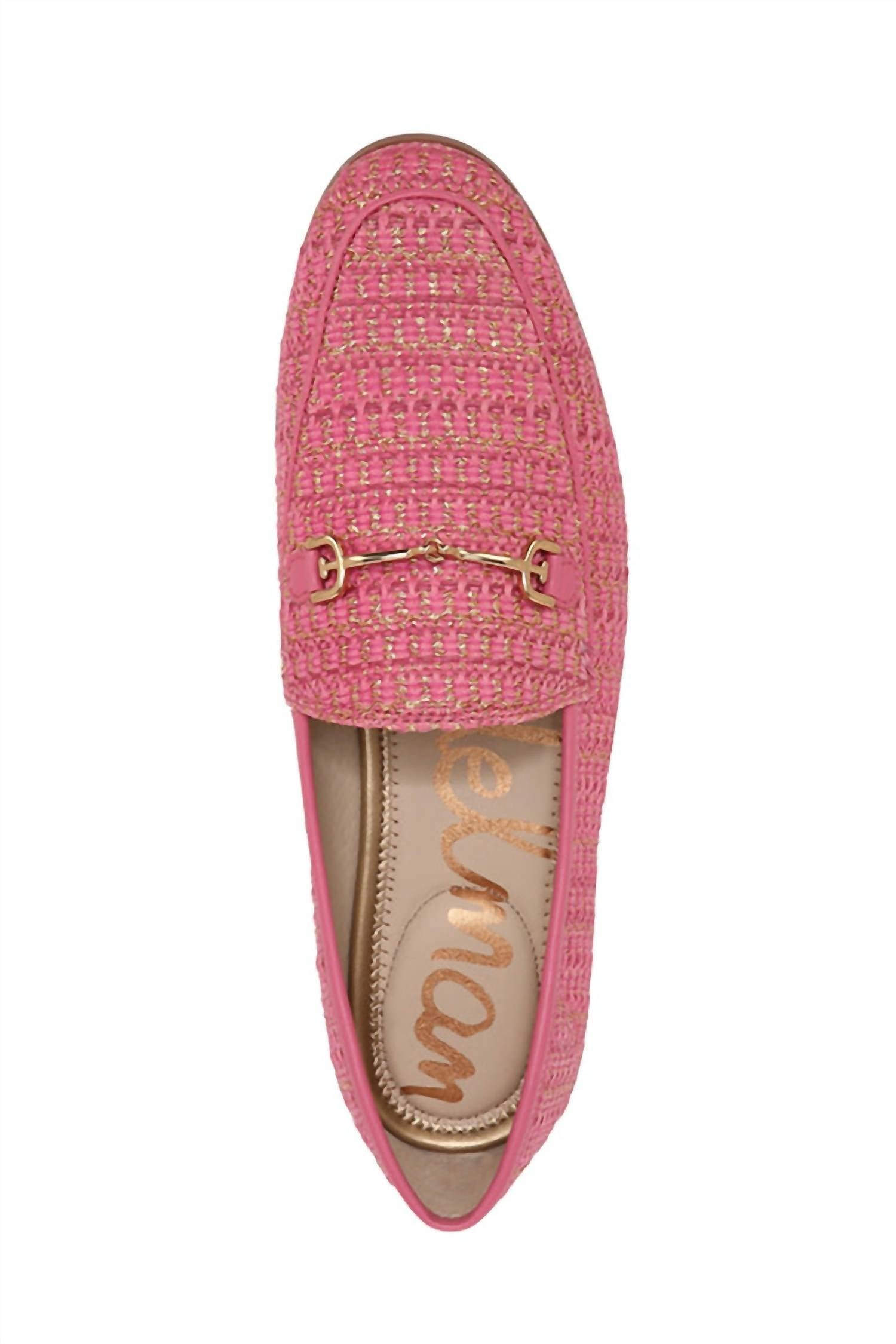 A preppy yet feminine take on the classic loafer.Meet the Women’s Loraine Bit Loafer by Sam Edelman, the ideal blend of sophistication and whimsy. With a chic pink rose boucle finish, this loafer is adorned with stylish gold hardware for a menswear-inspired touch. Featuring a sleek sole and a round toe shape, it offers both comfort and elegance. Perfect for the modern woman, these flats are a must-have in your shoe collection.