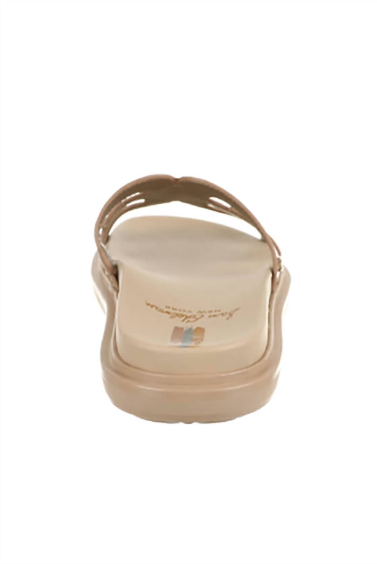 Flowy dresses, cropped pants, and even jumpsuits… this sandal works with them all!Step into comfort and style with the Women’s Valeri Slide Sandal by Sam Edelman, crafted in sophisticated Almond Patent leather. These slip-on sandals feature an open toe and flat heel design, with a platform height of 0.5 inches providing just the right lift for every step. Closure: Slip-on. Material: Leather.