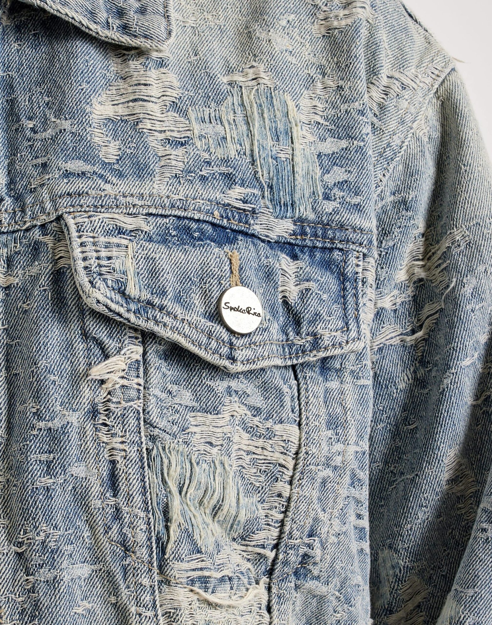 The Smoke Rise Distressed Denim Jacket brings rugged streetwear vibes with its bold distressed detailing and timeless denim construction. Perfect for layering, this versatile jacket adds edge and style to any casual outfit.