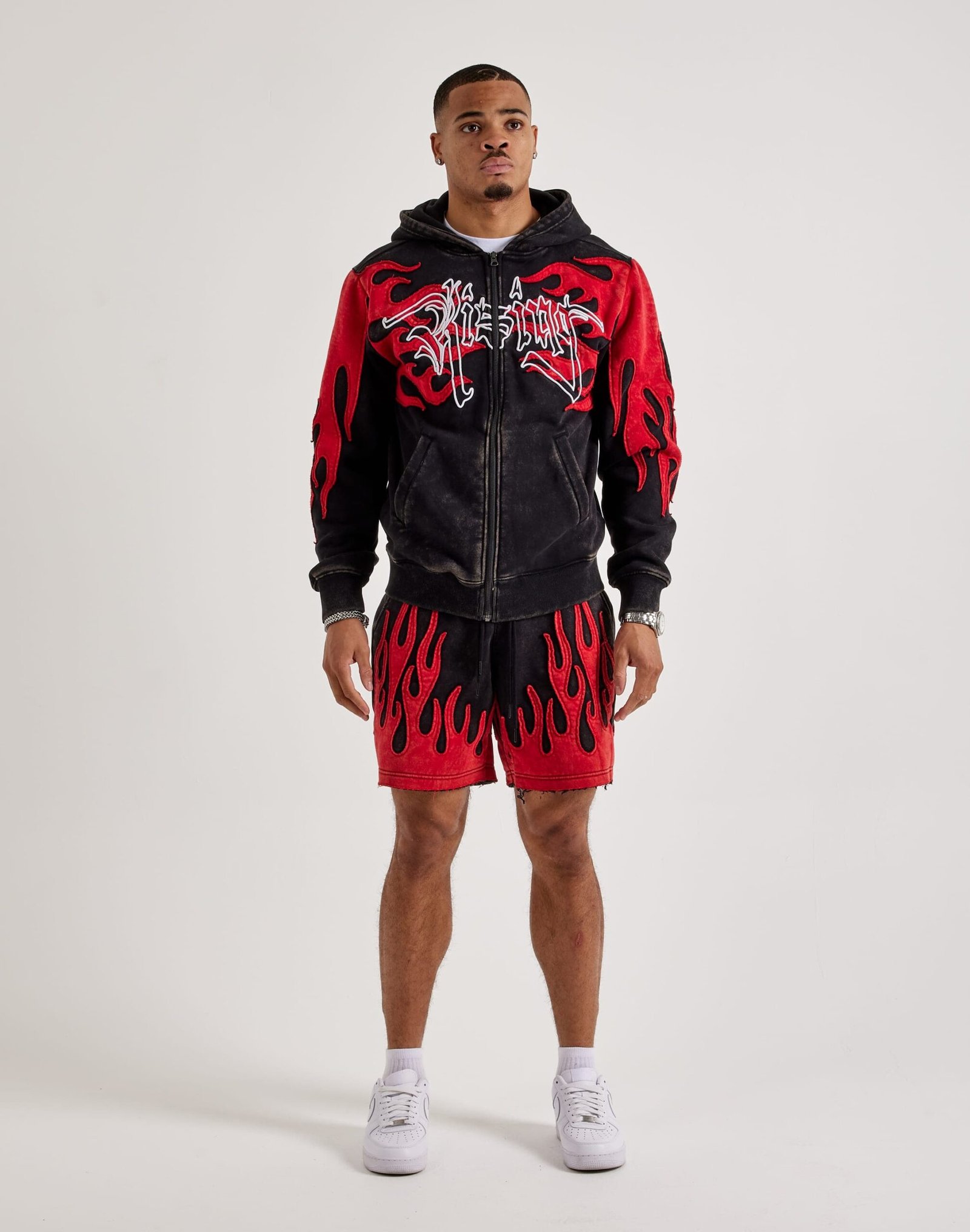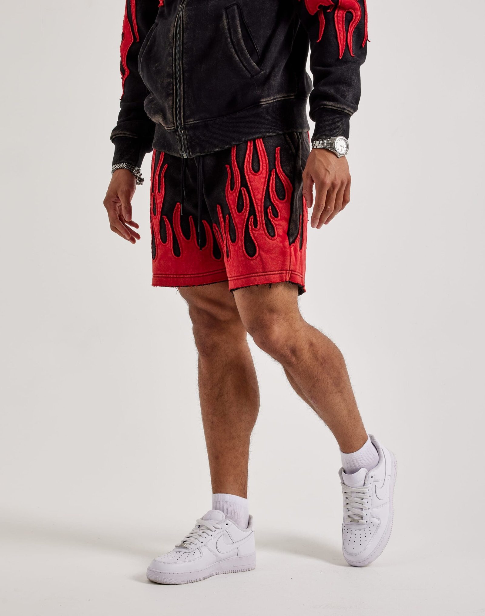 Ignite your streetwear style with the Smoke Rise Flame Fleece Shorts, featuring bold flame graphics and ultra-soft fleece for all-day comfort.