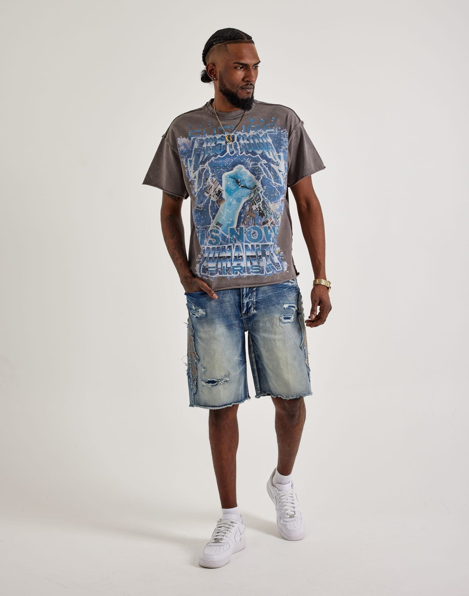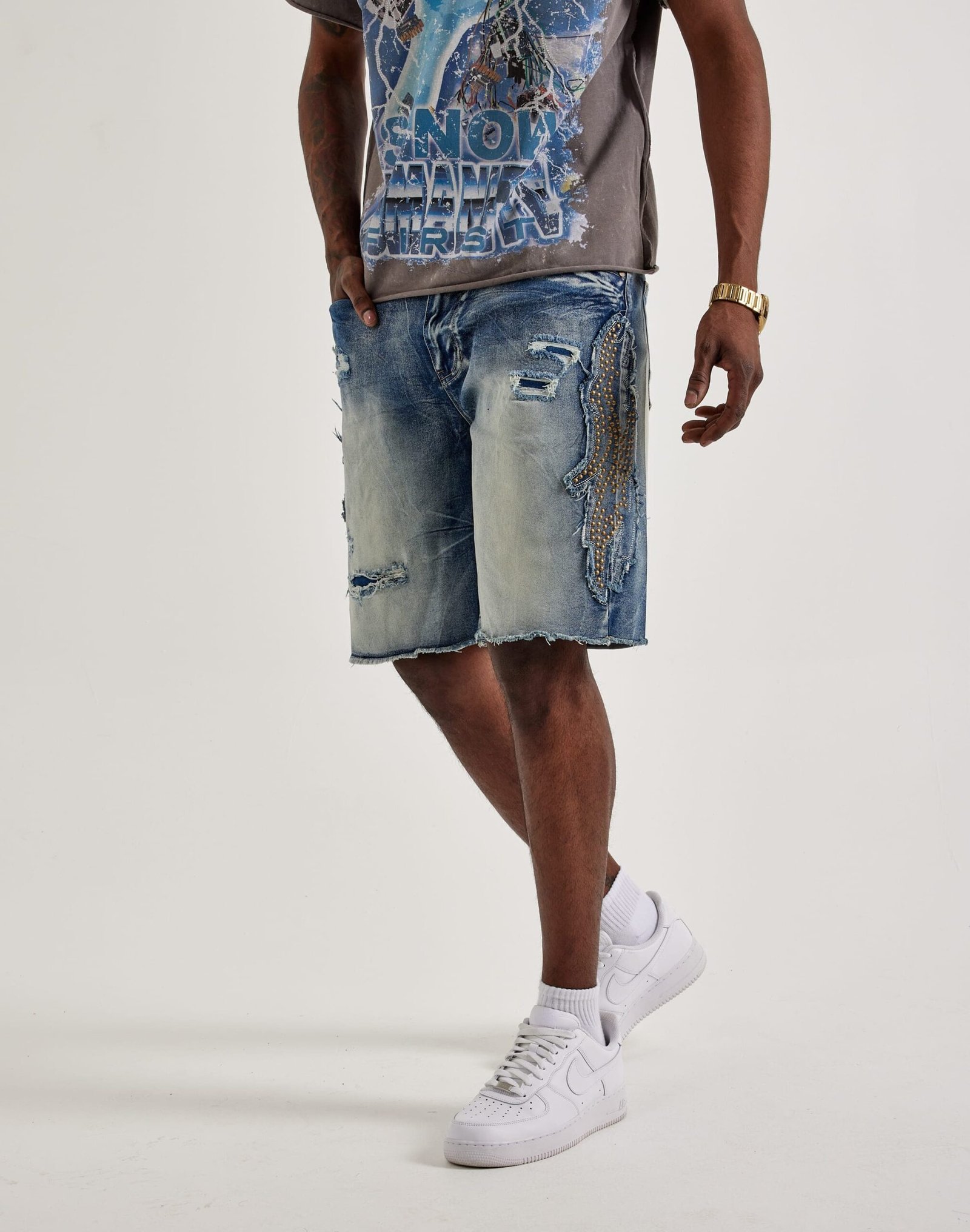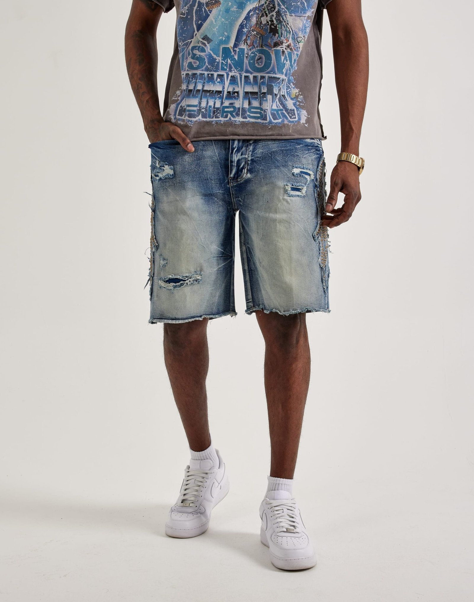 - Denim shorts