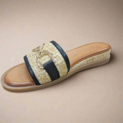 Flowy dresses, cropped pants, and even jumpsuits… this sandal works with them all!These sandals boast a leather and textile composition, featuring a luxurious leather lining and sole lining, ensuring both comfort and elegance. The chrome-free leather lining caters to those with sensitivities, while the buckle closure enhances ease of wear. Fashioned with a fashionable raffia trend and a stacked block heel, these sandals are both contemporary and timeless.