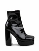 Say hello to the perfect, most versatile boot. The ankle height makes this style easily transition from day to night. Wear them with your favorite skinny jeans and tee for a more laid back look, or pair them with your favorite mini dress and jacket for a night out on the town.Vegan leather upper material. Vegan leather sock. Synthetic lining. Leather sole. 5 inch heel height. 1.5 inch platform. 2.5 inch shaft circumference. 5 inch shaft height
