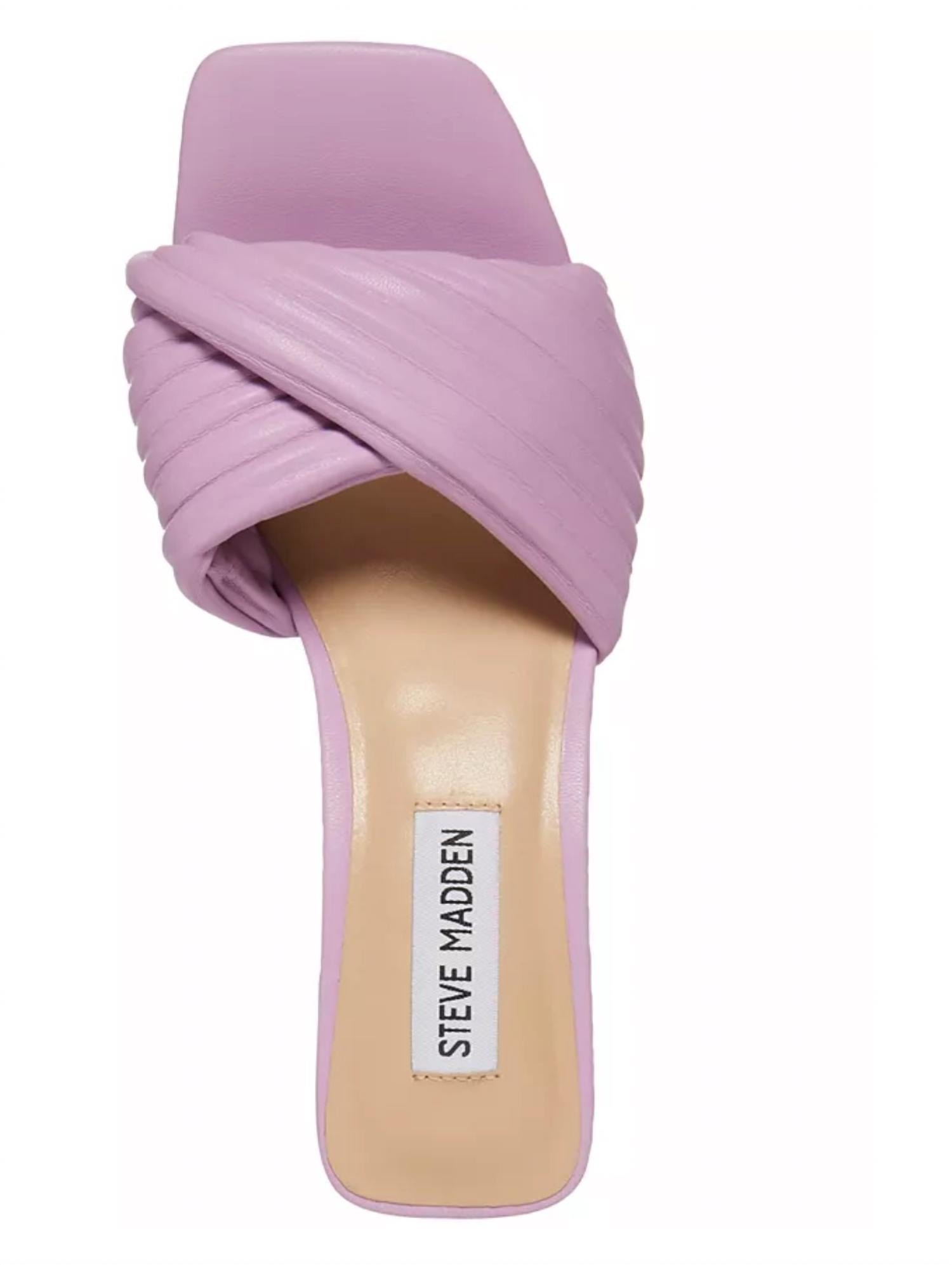 Pair these beauties with your favorite skinny jeans or dress for a night out on the town.Elevate your style with the Women’s Crisscross Strap Kitten Heel by STEVE MADDEN, crafted in a vibrant purple hue. These square-toe slip-on sandals showcase a crisscross twist strap that adds a stylish dimension, complemented by quilted detailing. The sleek kitten heels measure 3 inches, perfect for cocktail parties or summer outings. Made with a manmade upper, lining, and sole, these sandals embody the maximalist trend.