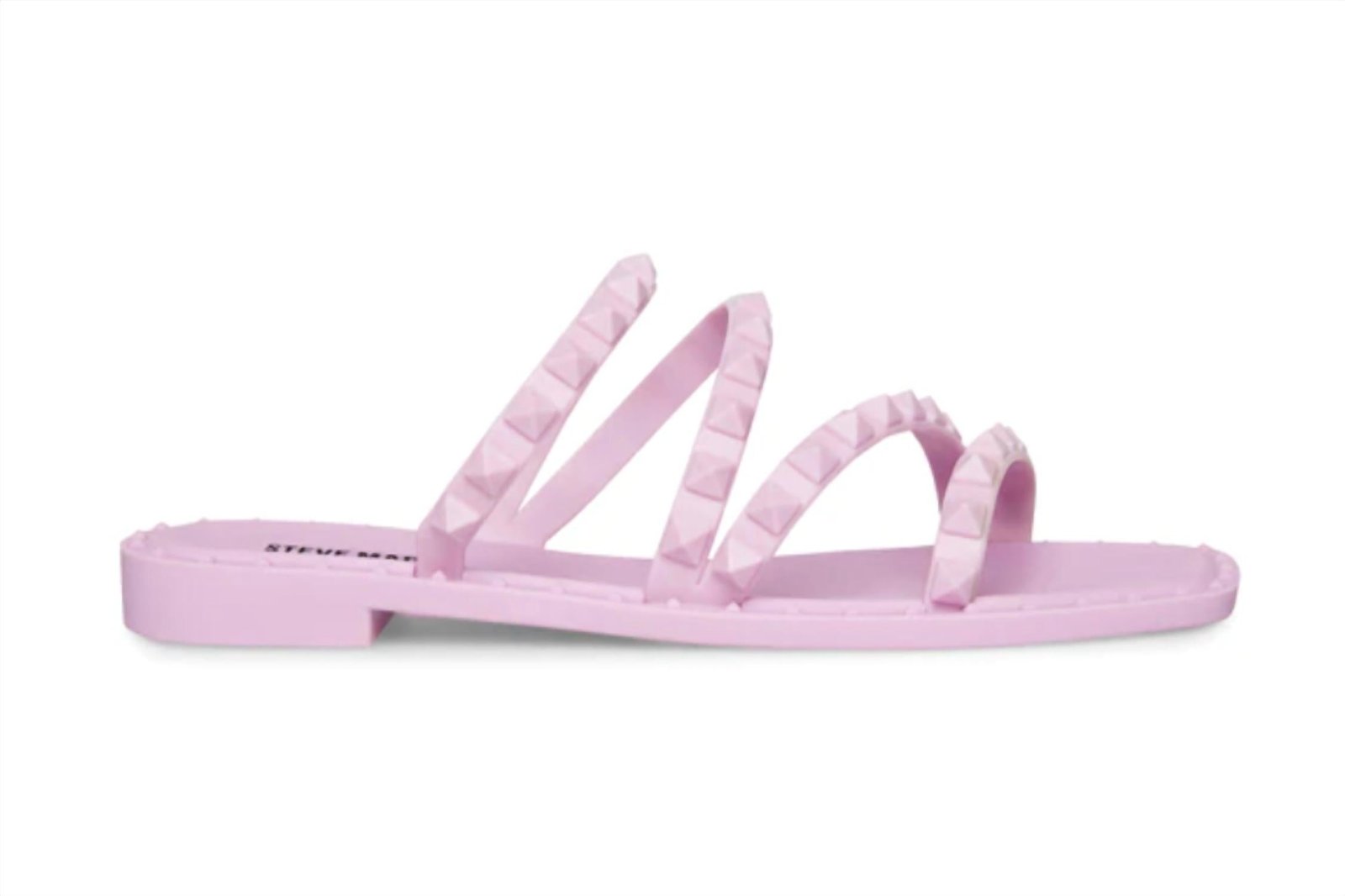 Classicly cute and all-day-wearable. We love this sandal.Introducing the Women’s Skyler Strappy Slide Sandal by Steve Madden, a chic addition in lilac that effortlessly enhances your summer wardrobe. Featuring an open toe design trimmed with edgy pyramid studs, these sandals offer a stylish boho chic flair. Constructed with a synthetic upper, lining, and sole, this sandal provides a gentle .75-inch heel lift for added support and comfort. Perfect for vacation wear, these flat-heeled sandals are a trendy choice for Easter festivities.