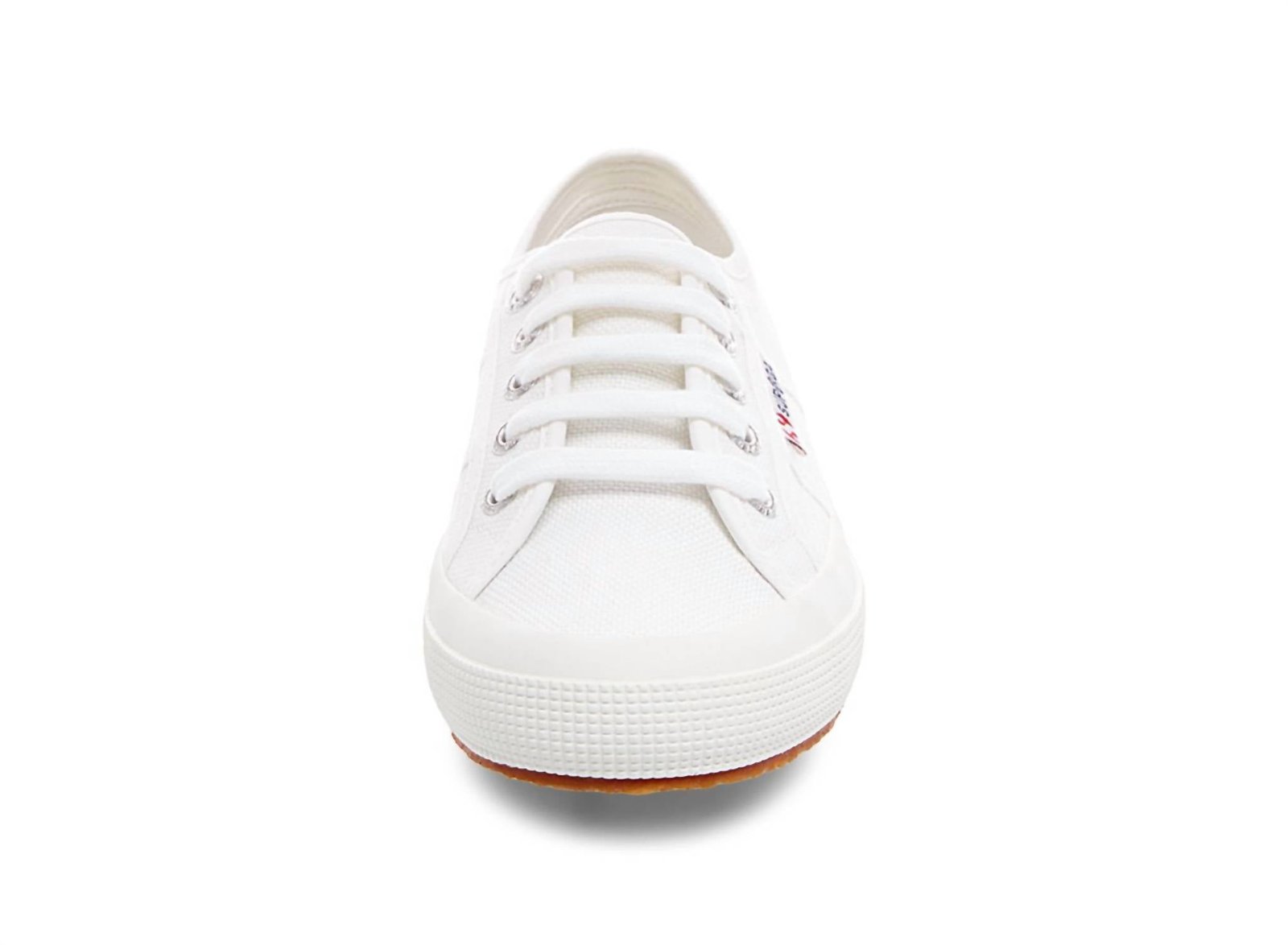 Cute, functional, and comfortable. These sneakers check all the boxes.Experience timeless style with the SUPERGA Women’s 2750 Cotu Classic Sneaker, a streetwear staple for summer. Crafted from sturdy cotton, this white sneaker features a lace-up closure with metal eyelets for an adjustable fit and a loop signature tag at the side. Its cushioned footbed ensures all-day comfort, while the natural rubber, crepe-textured outsole provides traction and durability.