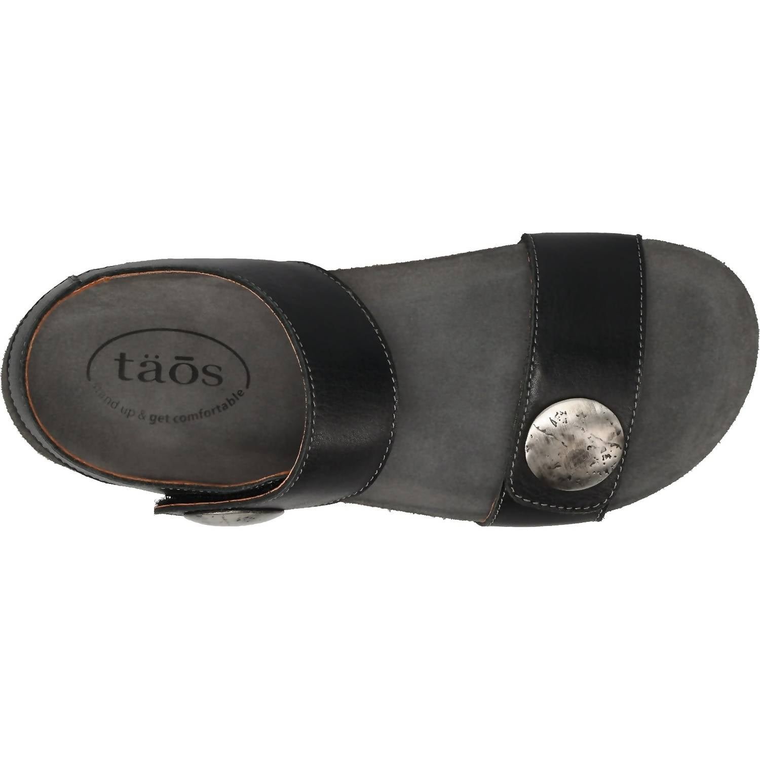 This sandal will take you from brunch to dinner and everything in between.Step into style and comfort with the Taos Luckie Black Leather Women’s Sandals, designed with European flair for effortless errands or vacation activities. These sandals feature two adjustable hook and loop backstrap closures adorned with pounded medallions, ensuring a perfect fit and boho chic appeal. An open toe style with a 1.25-inch wedge heel, these medium-width sandals boast premium leather uppers and a supportive, contoured cork-latex footbed lined with suede for ultimate cushioning. The lightweight rubberlon outsole enhances flexibility, while built-in arch and metatarsal support provide reliable comfort throughout the summer season.