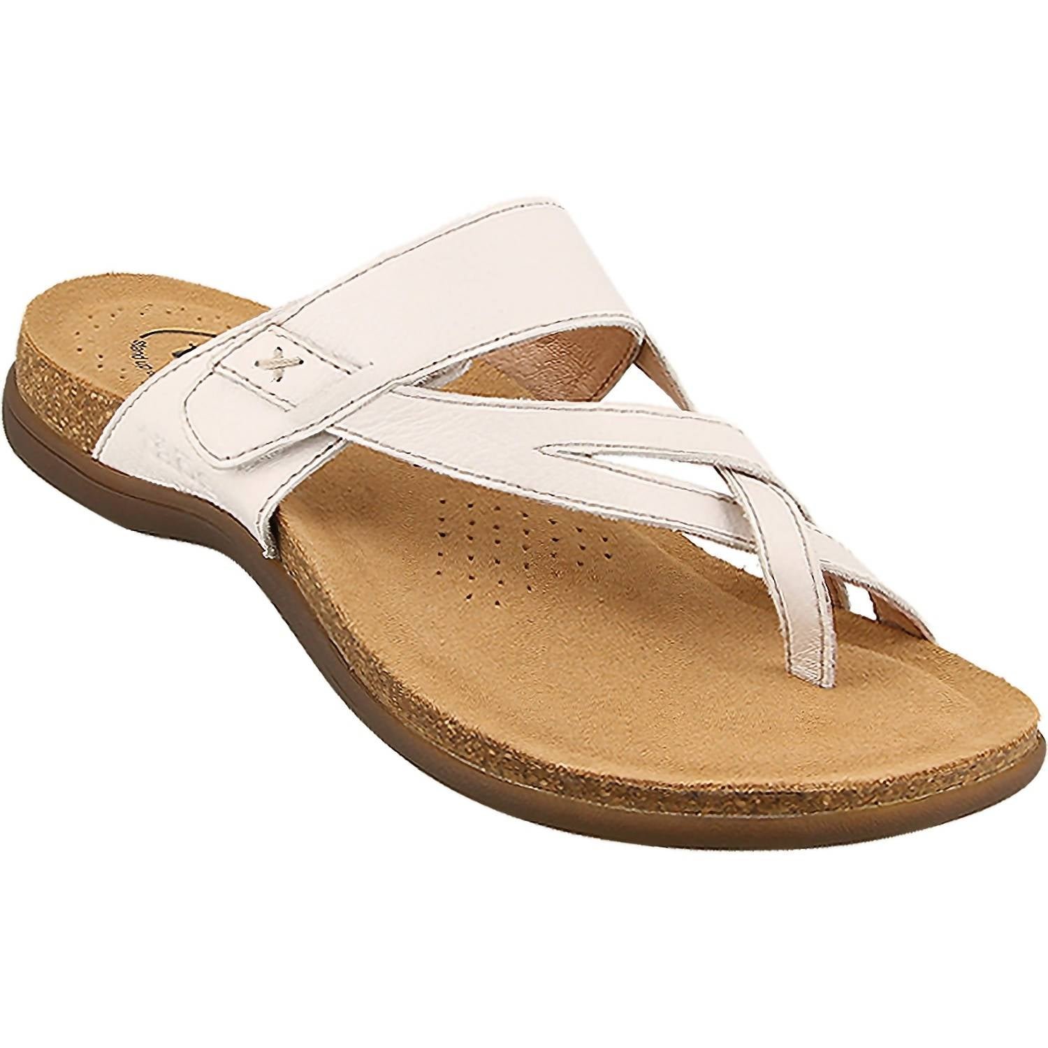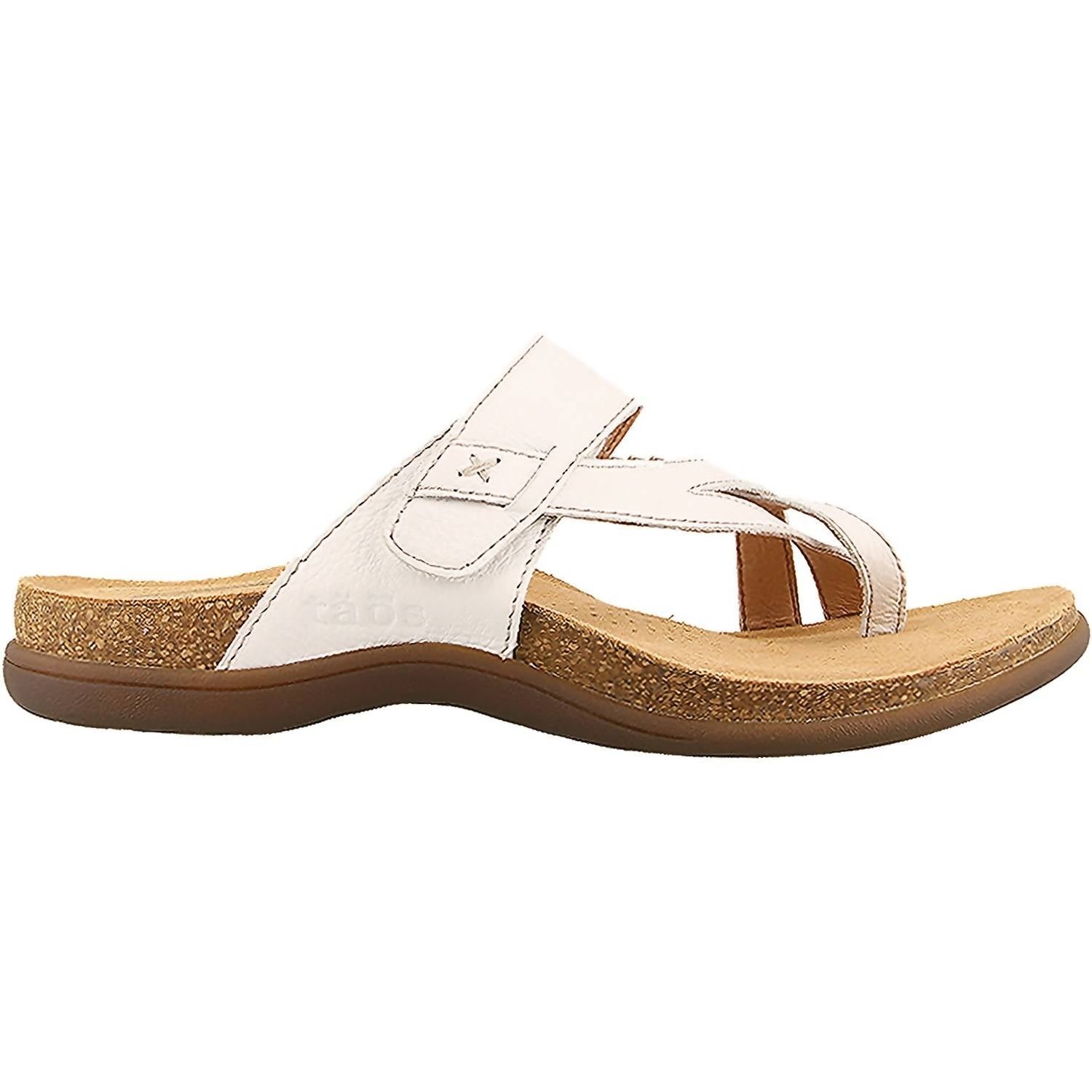 Flowy dresses, cropped pants, and even jumpsuits… this sandal works with them all!Step into all-day comfort with the Taos Perfect Leather Casual Sandals, ideal for any summer adventure. These stylish white leather thong sandals feature an adjustable strap and a premium microfiber footbed lining for ultimate softness. Enhanced with arch and metatarsal support, the molded, contoured polyurethane insole is covered with Cool Recovery Foam, while the flexible rubber outsole ensures durability. With a heel height of 0.75 inches, these sandals boast a convenient hook and loop closure, offering the perfect fit for every step.