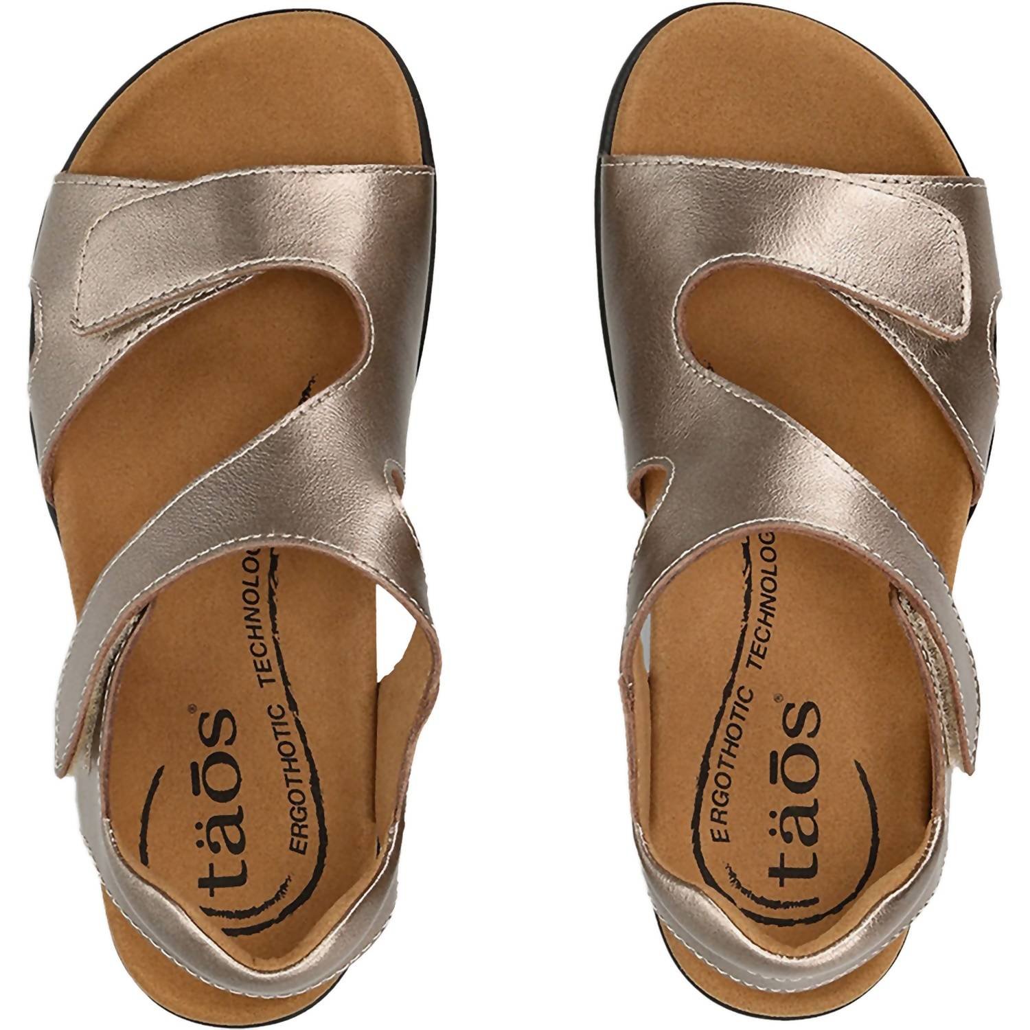 Flowy dresses, cropped pants, and even jumpsuits… this sandal works with them all!Experience ultimate support and classic elegance with the Women’s Serene Leather Sandals by Taos in a stunning Champagne hue. Crafted from genuine leather, these sandals feature a breathable microfiber lining and a structured support footbed for unparalleled arch and metatarsal comfort. A hook and loop closure ensures a secure and personalized fit, complemented by a 1.25-inch flat heel for all-day ease. Perfect for a minimalist trend, they are an ideal choice for Thanksgiving or dinner parties.