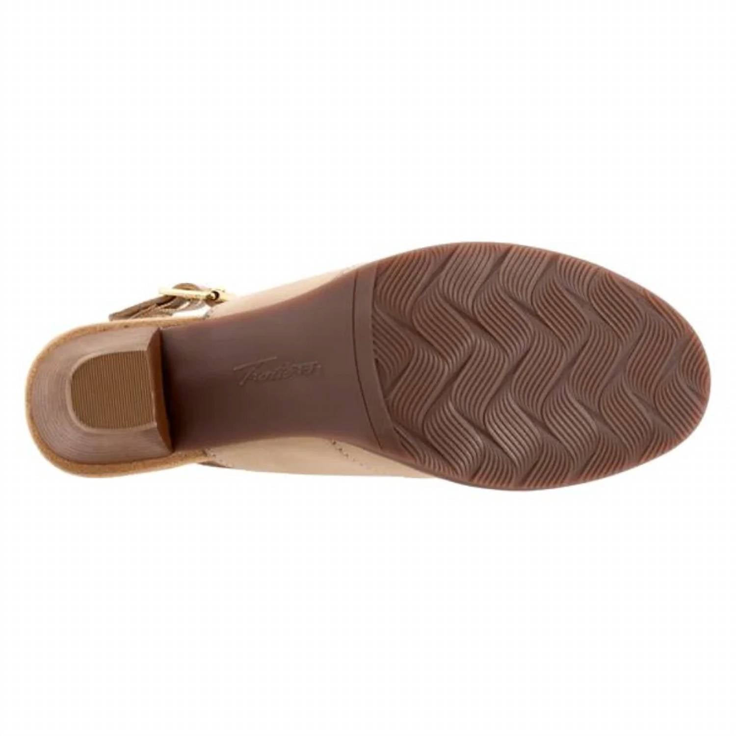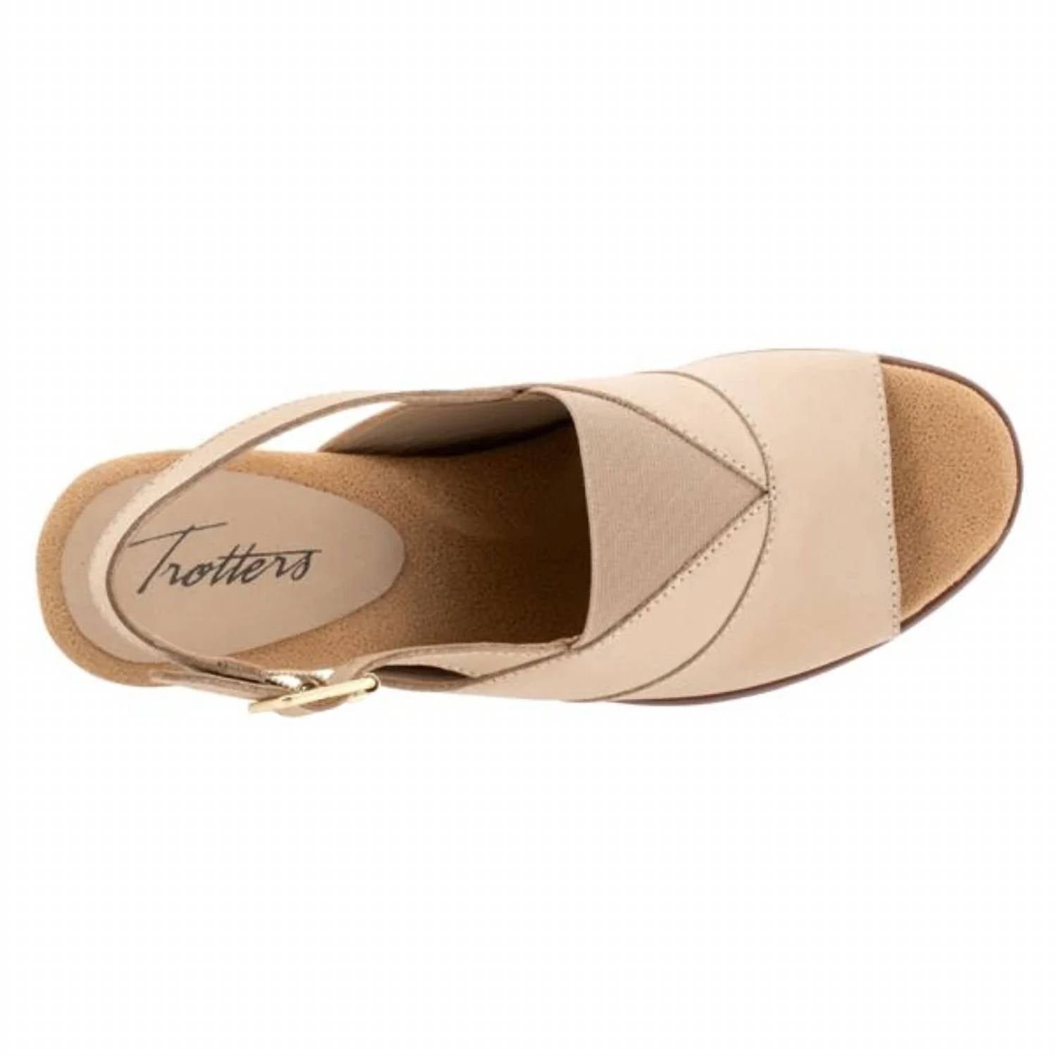 Flowy dresses, cropped pants, and even jumpsuits… this sandal works with them all!Step into elegance and comfort with the Women’s Mavis Sandal by Trotters, crafted in a chic Sand Nubuck color. These mid-height block heeled sandals feature a nubuck leather upper with leather lining for an upscale look, complemented by an open toe design. The adjustable buckle and elastic goring ensure a secure fit, while the cushioned footbed with soft lining promises all-day comfort. The slip-resistant, lightweight flexible rubberized sole offers stability, making these sandals perfect for any occasion. Enjoy a fashionable boost with a 2.25′ heel height. Ideal for the modern woman seeking style and support.