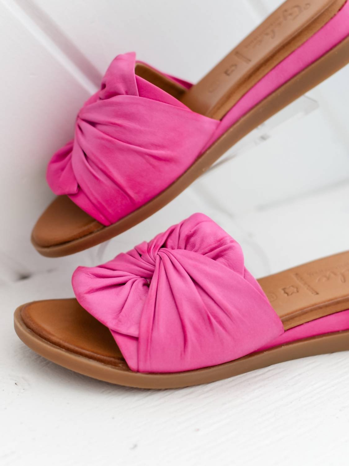 This sandal will take you from brunch to dinner and everything in between.Step into effortless elegance with the Women’s Sassy Leather Slide Sandal by Tyche in vibrant Fuchsia. Designed for the fashion-forward, these leather sandals feature a sleek slide silhouette and a comfortable low heel, ranging from 1 1/4′ to 2′, perfect for summer occasions and anniversary celebrations. The Y2K trend-inspired design offers both style and comfort, making it an ideal choice for Mother’s Day gifts. Embrace the round toe and elevate your casual and special occasion looks effortlessly.