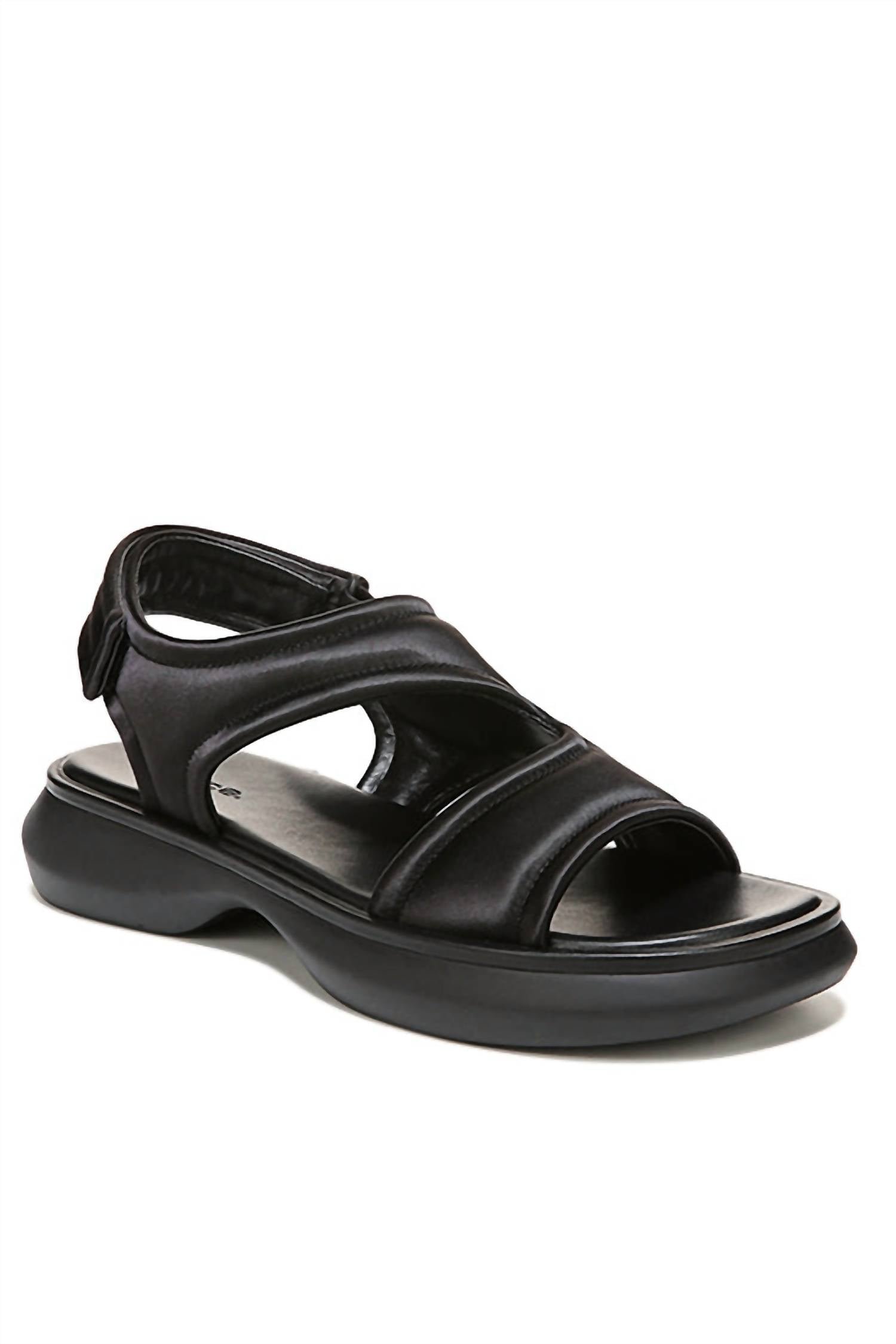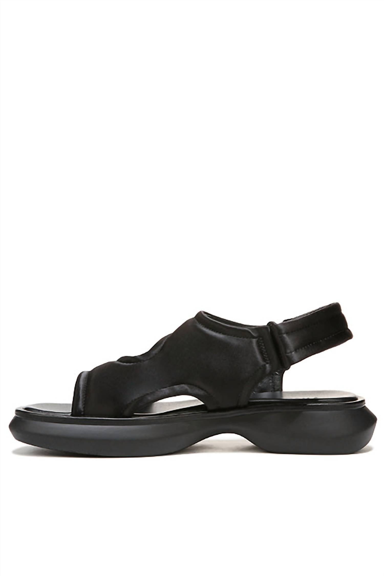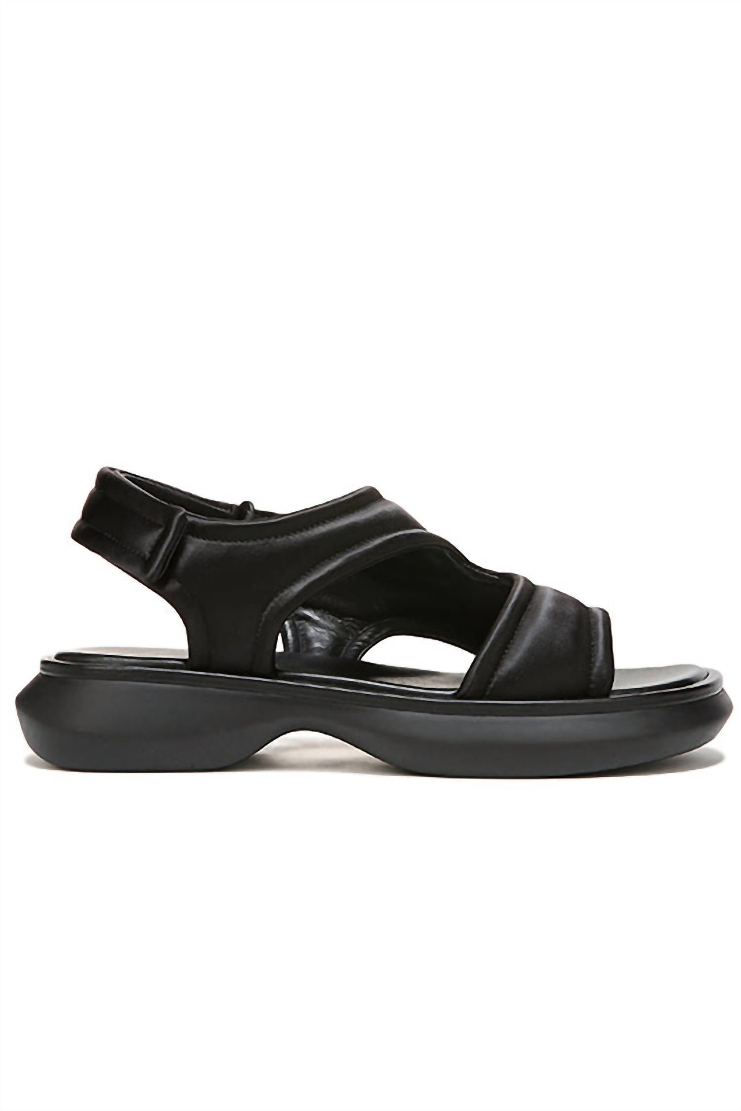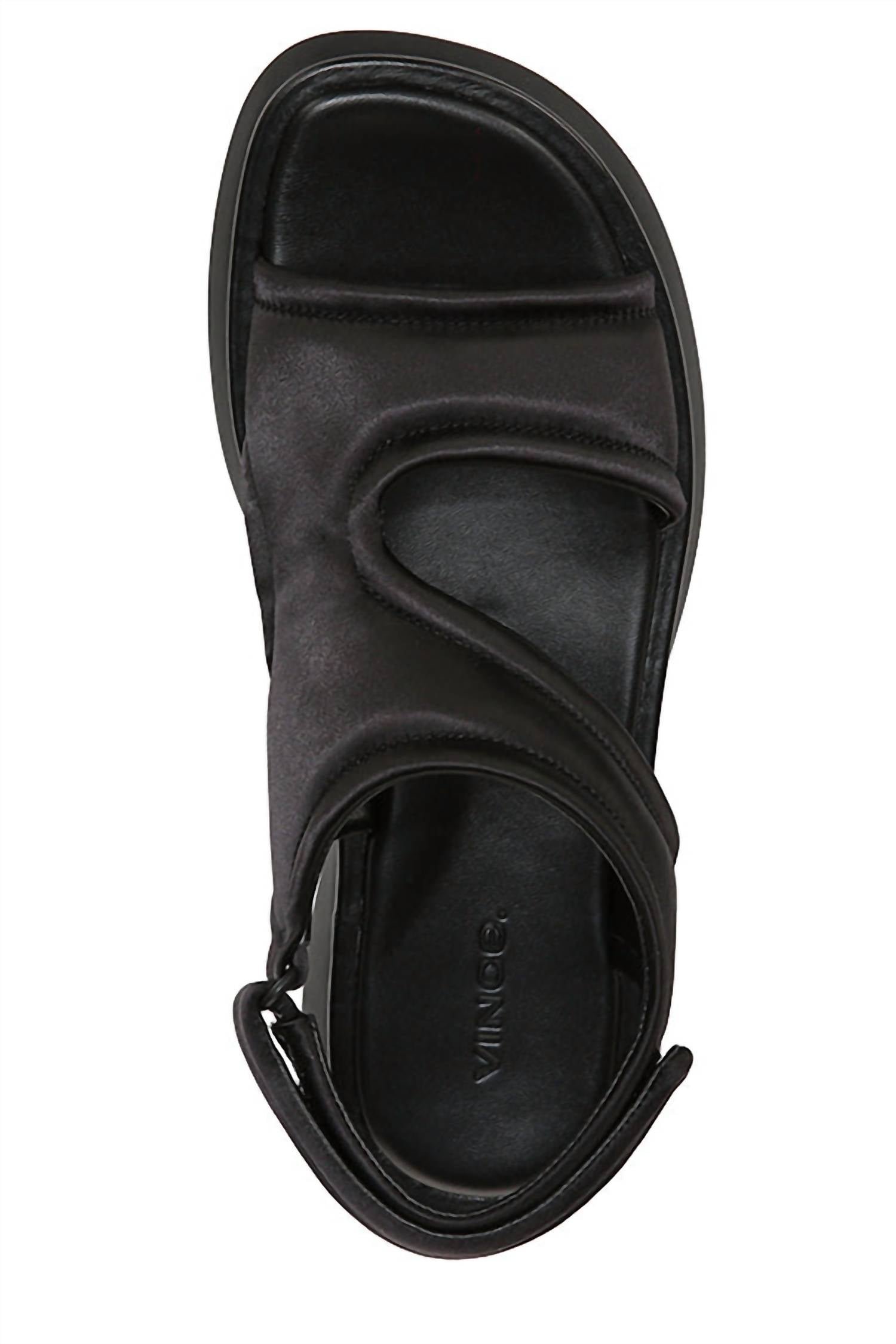 Flowy dresses, cropped pants, and even jumpsuits… this sandal works with them all!Step into summer with ease and elegance in the Women’s Fresca Satin Sandal by Vince, a chic black sandal crafted for both comfort and style. Featuring a supple suede construction, this sandal incorporates a sculptural platform sole and boasts an adjustable Velcro closure for a customizable fit. This women’s 100% leather slingback design highlights an open square toe and a flat heel measuring 1.5 inches for a subtle lift. Please note that the sandals are imported and require professional cleaning to maintain their luxe appeal.