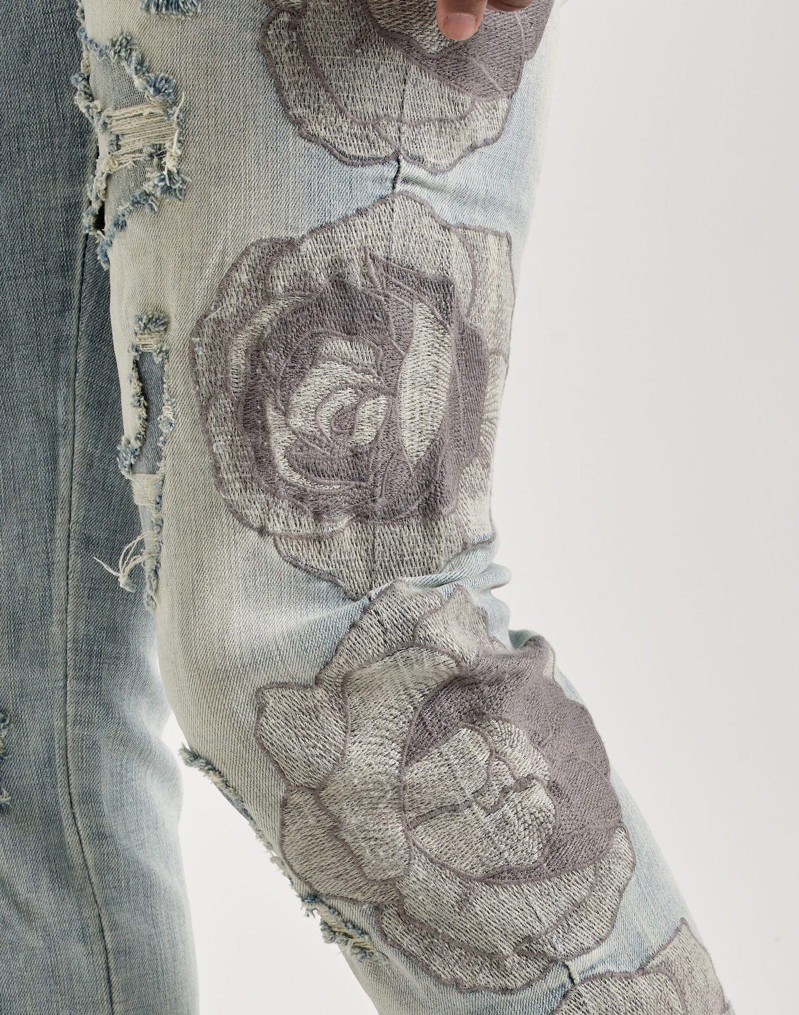 The Waimea Stacked Floral Embroidery Jeans combine edgy moto-inspired details with a modern stacked silhouette. Featuring floral accents and a sleek fit, these jeans deliver standout style and everyday comfort.