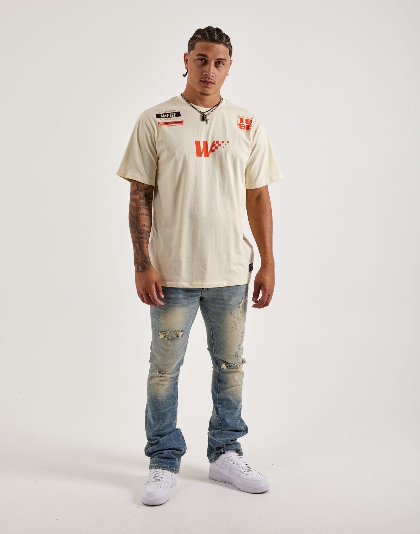 The WESC Mason Distressed Motorsport Tee combines bold streetwear style with all-day comfort, featuring a striking graphic design on soft, breathable cotton. Perfect for casual wear, this tee adds an edgy, modern look to any wardrobe.